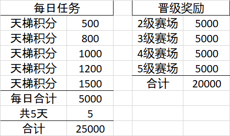 即 天梯赛共有5天,每天都会结算,淘汰一部分人,一直获胜的玩家可以成功进入5级赛场。