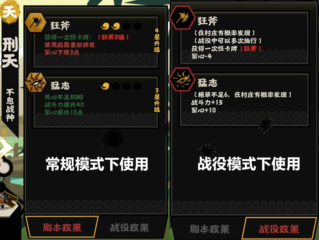 ①先分清名臣战役和剧本政策,战役是在战役模式下才能生效的技能(如:长平之战),剧本政策就是通常的三皇五帝、春秋战国这种剧本模式下生效的。