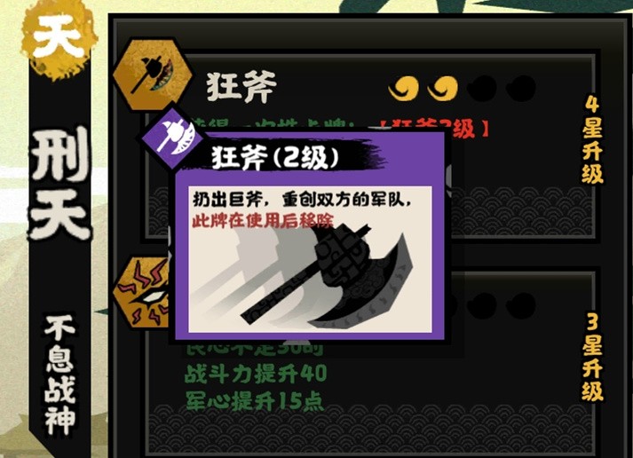 ②优先选属性总高的,然后像特殊技能这些也是很重要的。如:刑天的一次性卡牌:狂斧,生产一次消耗不大,但是对作战的输赢影响非常大。