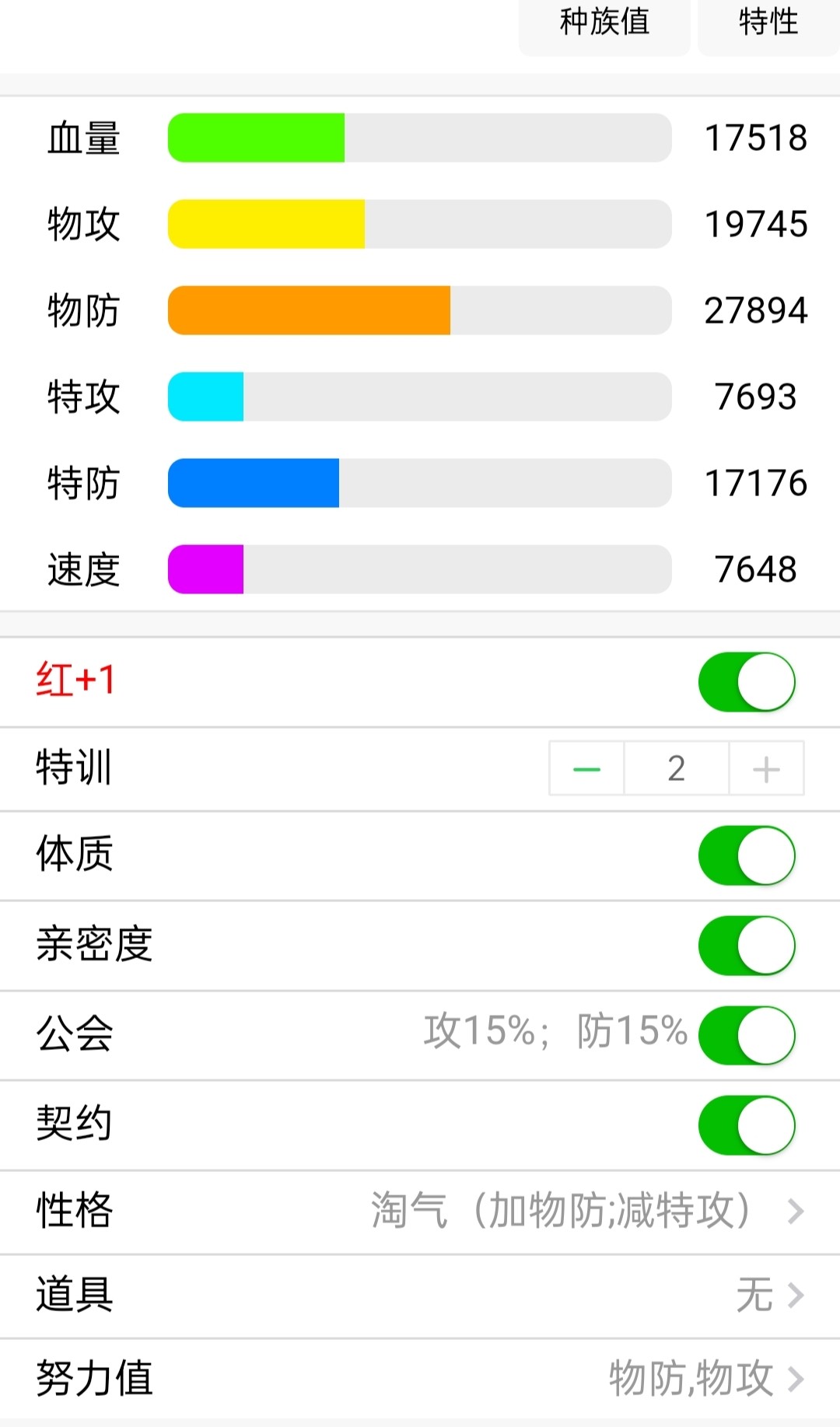 说明:这个也是最简单的一个配置,队友最好选择骡子马,尤其新骡子马骗术回合还增加了,上去先用保护冲撞叠自身物防,然后配合道具和特性,就开始暴力输出,遇到特攻手,可以提前预判龙尾扔走。或者超龙尾甩走。辅助物盾型努力搭配:血量+防御