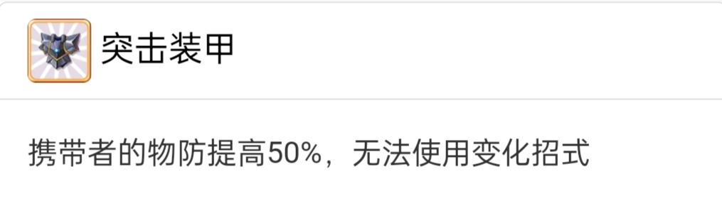 如果是单纯联防,那么可以携带装甲,装甲加成50%防御,对它来说也相当于攻击也有加成,虽然不能用变化技能,但是技能没锁,可以用保护冲撞强化。还可以关键时候甩大招。只不过回复就要依靠队友了。