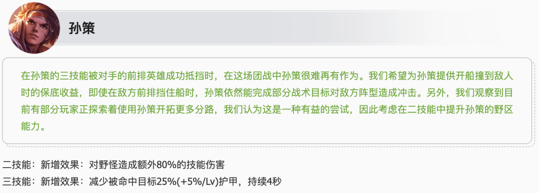 此次官方对其调整二技能增加了个效果就是对野怪造成额外80%的伤害,其次是三技能加了降低被命中目标的25%到35%护甲。这两处调整估计是上不到正式服,此次加强的有点大。因为这个英雄三技能本身就有伤害、霸体、控制等效果,此次调整又给他加了个35%的物理穿透,想想就刺激。
