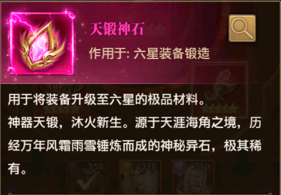 装备锻造的必需品【天锻神石】与六星粉装自选箱都是在限时活动中获取,有想法的主公可以多留意一下游戏中的活动哦。