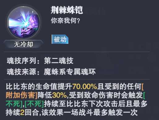 · 比比东的武魂真身至多只能持续3回合,所以其基础的效果就可以理解成一个大大的技能......