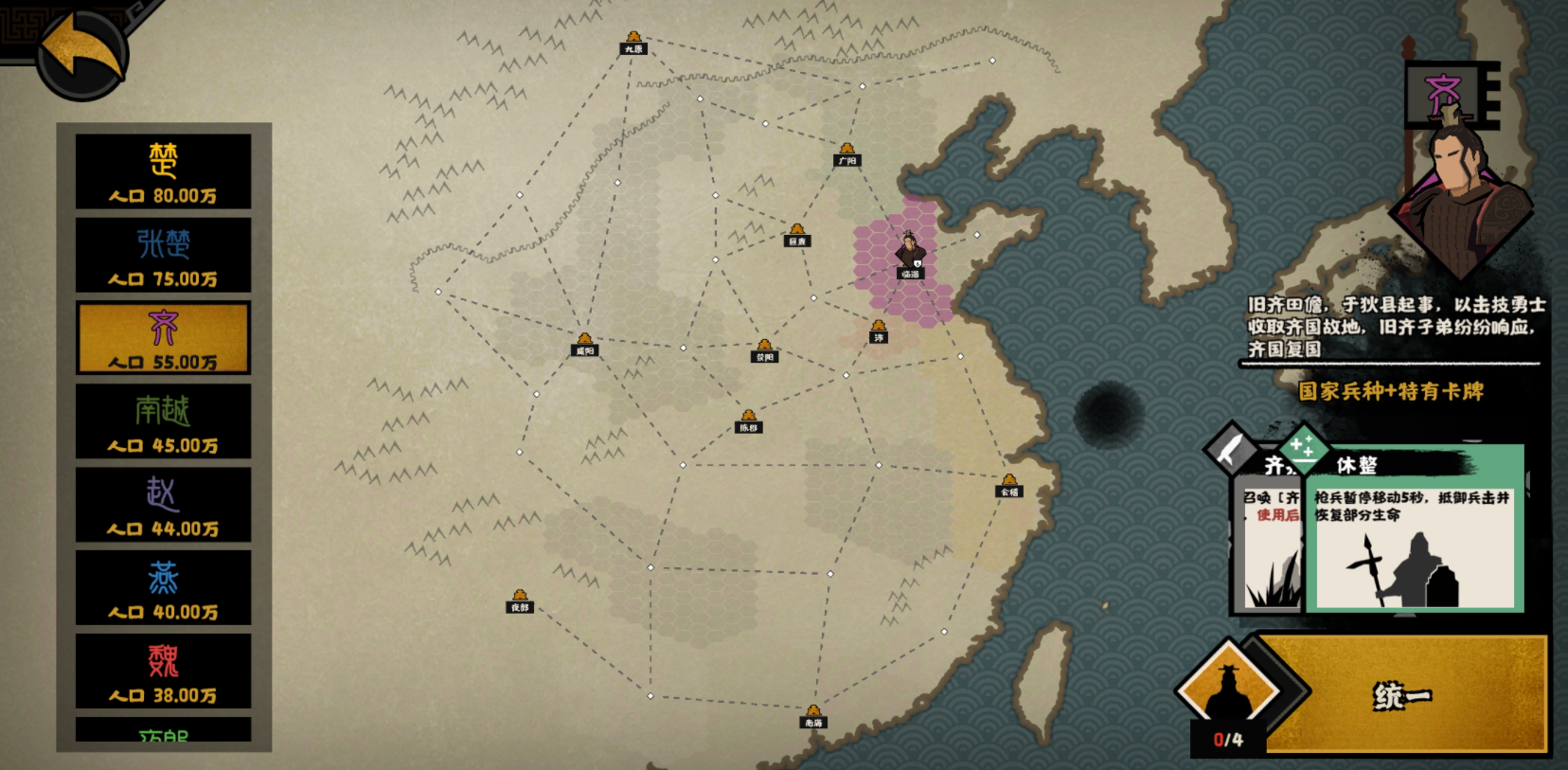 秦楚汉是一个乱世,整体玩法依然是以征战和寻求统一为主。但是经过秦国的南征北讨,华夏之地变大了不少。各地除了城池之外,也有了不少了的关隘,据点,承担着重要的职责。