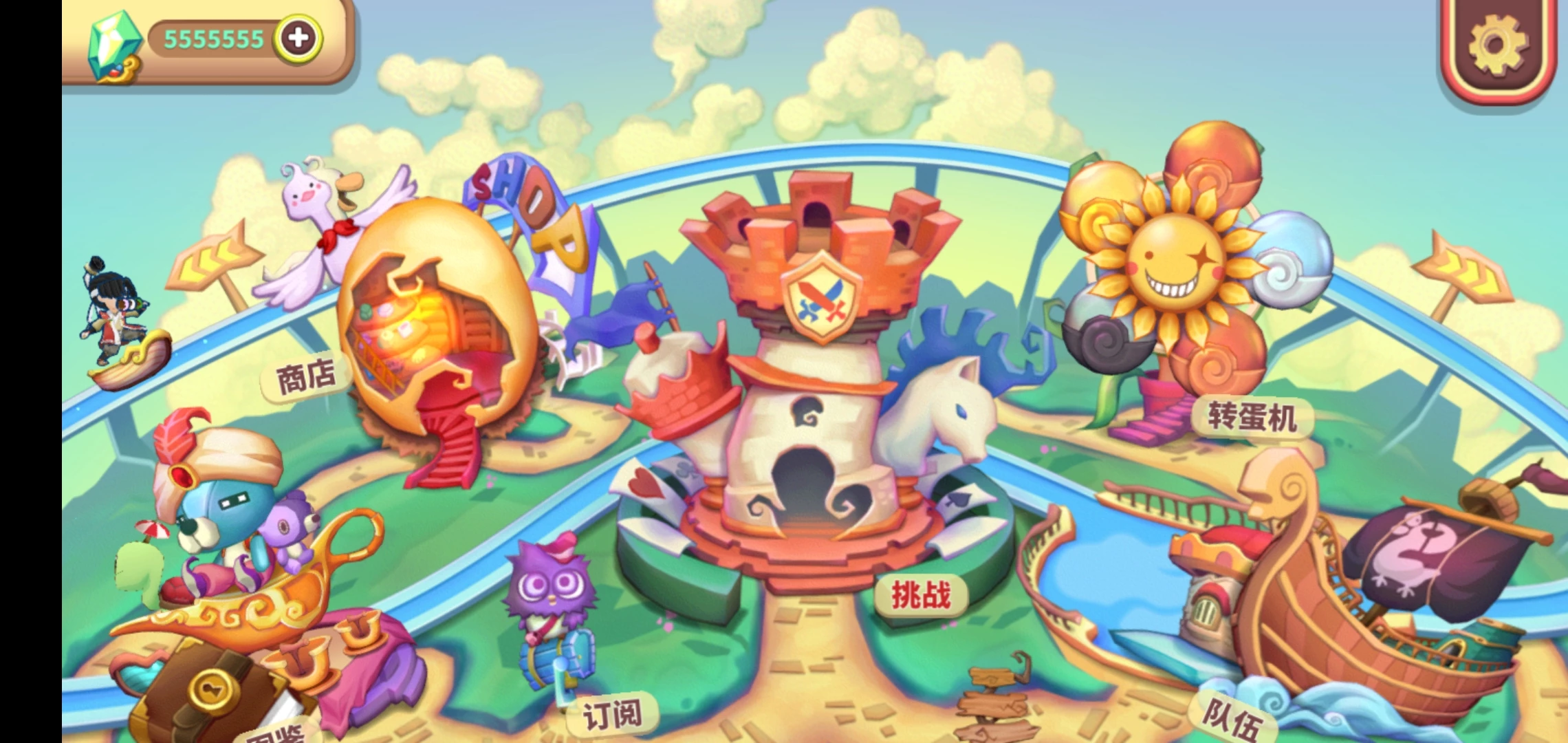 这很符合我们的童话世界,从不用现实世界里横平竖直的平实建筑,色彩也是五彩斑斓的,一切只为了夺你眼球。游戏的整个主画面是一个环绕的地图,一只大鸭带着一个英勇的少年,后面跟着一群小鸟儿、小紫鼠、*还有小乌龟。大家一起乘着小船,跟着这只鸭导游环游整个童话镇。这个童话镇里有乡村小路、小溪流还有空中吊桥,意境还是很美的。