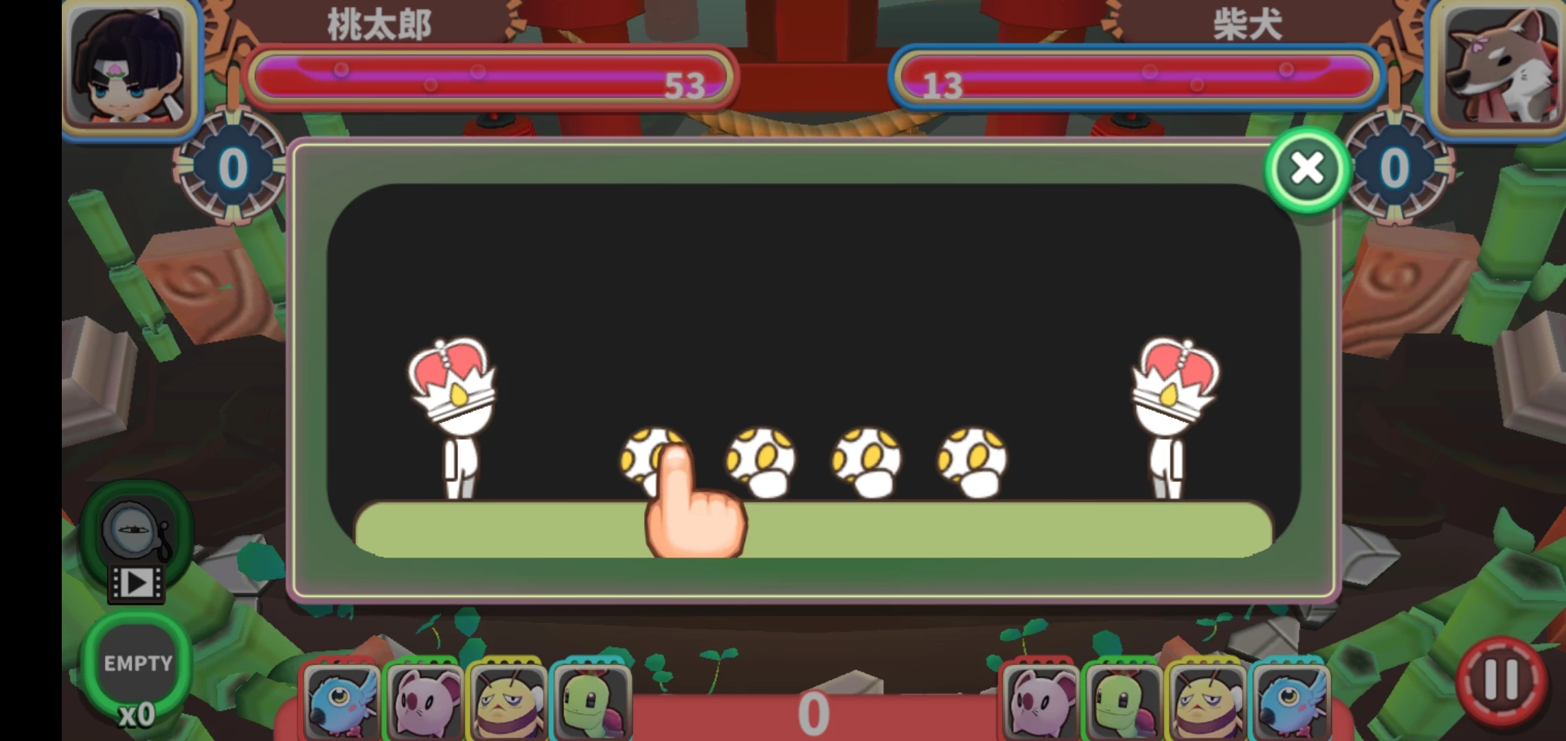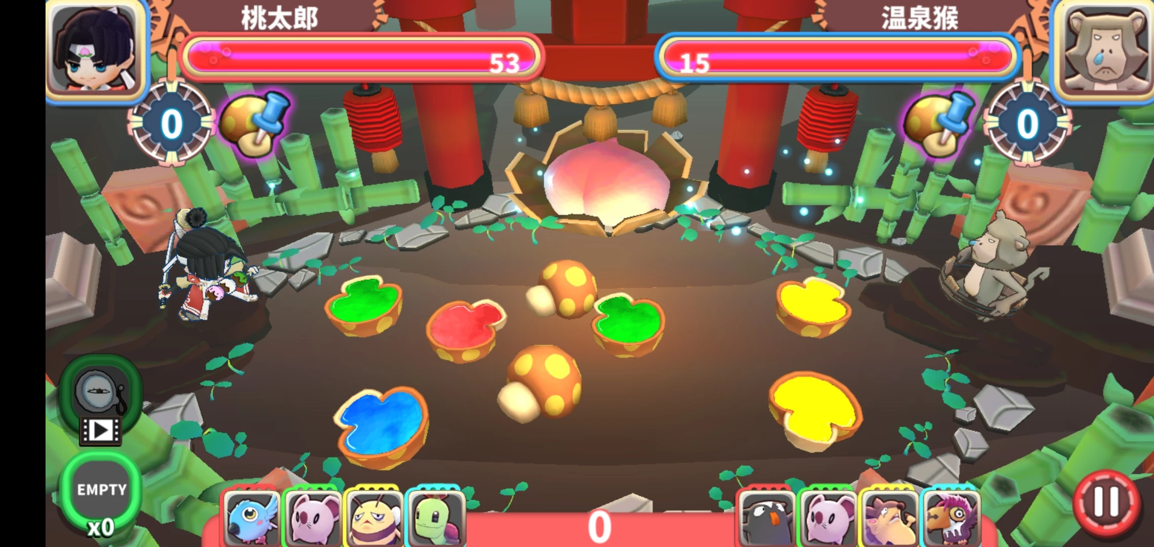 两个人对战的时候,有一堆颜色不同的蘑菇会散落在你我之间,有一些蘑菇是两两相同,小小的给你展示小段时间,然后全部翻转。然后靠你的记忆力找到两两相同色的蘑菇。如果找得到,那么对方受到的伤害会增加。
