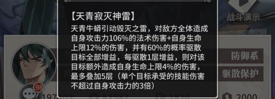 天青牛忙并不是靠本身高额的伤害系数,而是靠主动技能和被动技能的群体攻击附加的生命上限打出来的,所以即使你本身伤害不高,只要附加了生命值上限就能打出消耗。