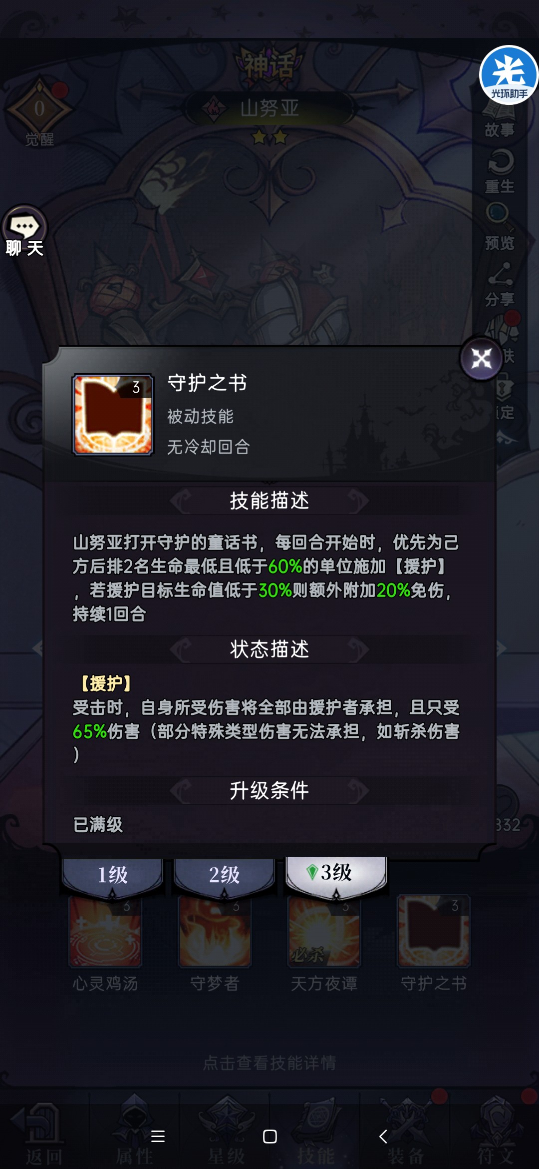 有着100%正面伤害援护 队友血量低的时候可以很好的保护队友 这里建议位置是后排 而不是中排 在后排可以更好的援护 并且援护只受到65%伤害