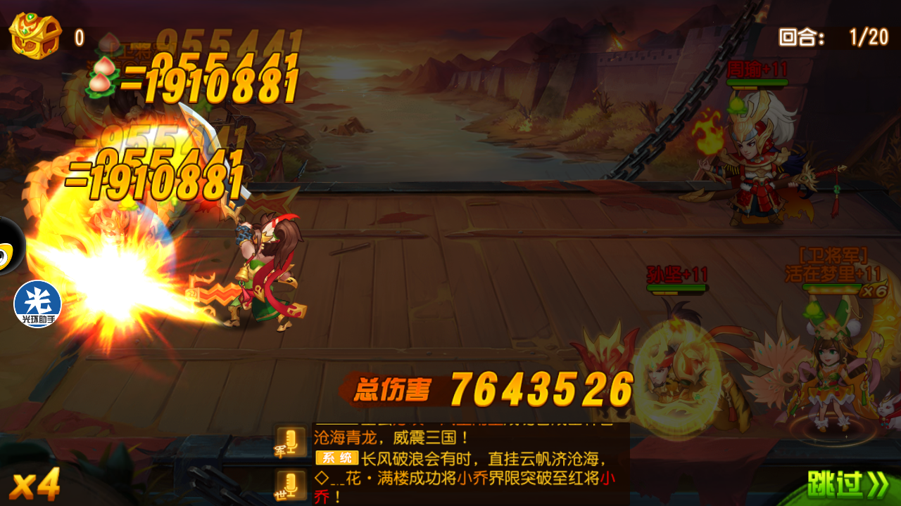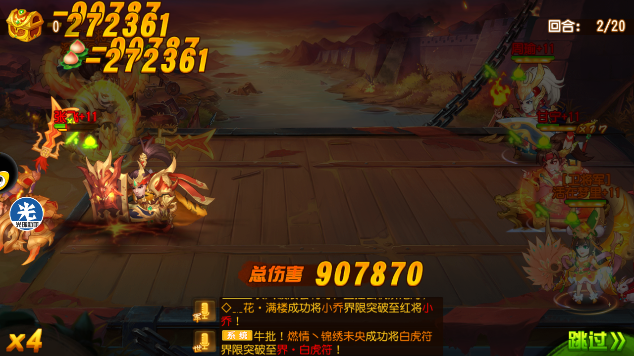为了破他,首先张合出手套盾给非强力的主角变张飞。保留一个张飞的目的,是为了给极限张飞桃子分担伤害。