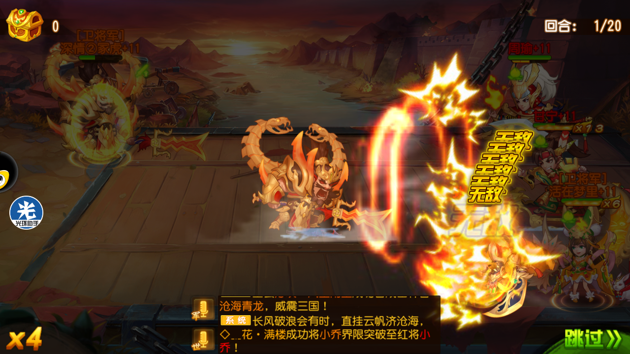 前一篇文章有人觉得对方吴国站位不对,多上了个孙坚,牺牲了小乔,下面看看四人对四人阵,对方高出我6万战力,后手的越战。