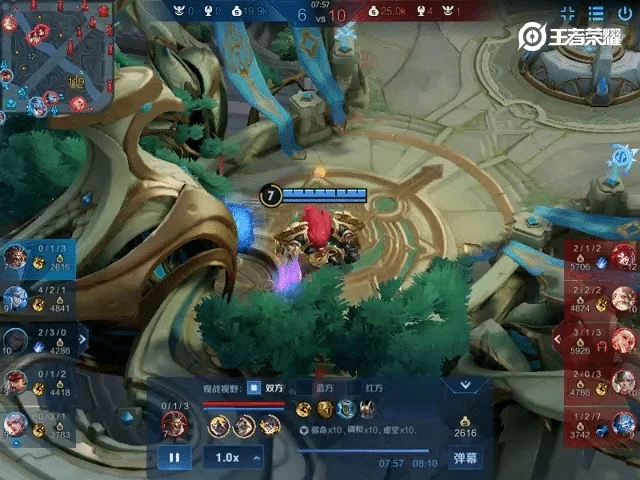 最后,在蓝色方阵亡两人,红色方开始拆水晶时,牛魔终于舍得挪出泉水。他冲进人群中控住五人,奈何为时已晚,红色方依旧击杀四人,推平水晶。