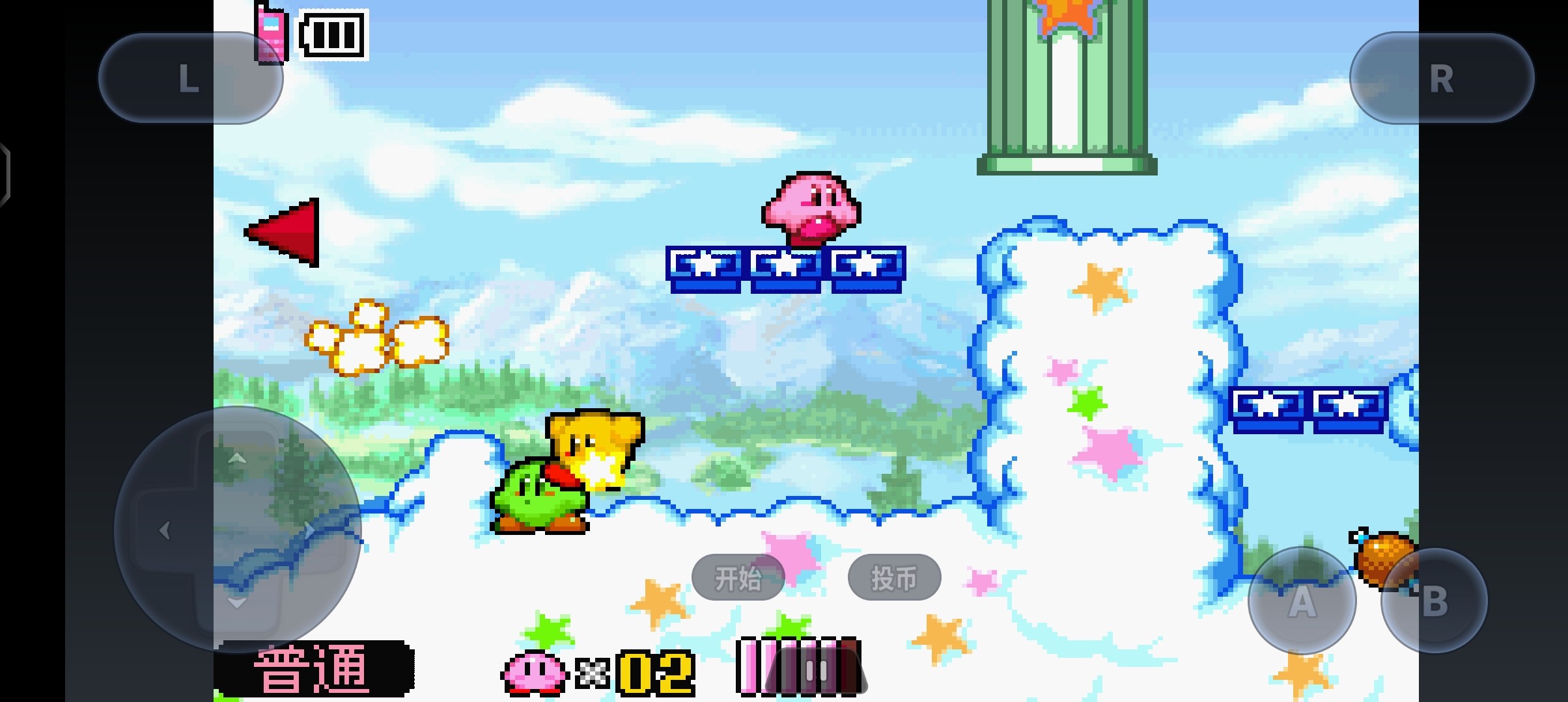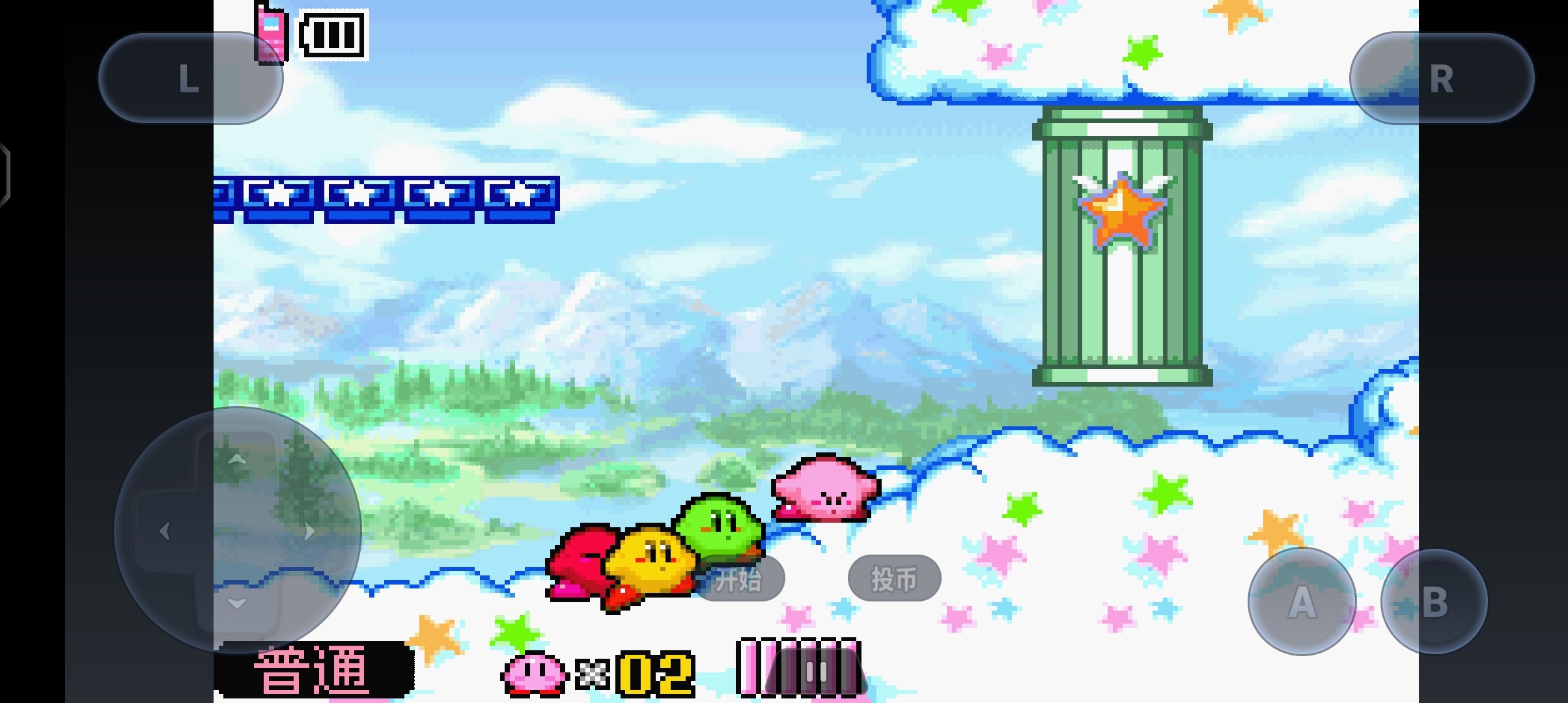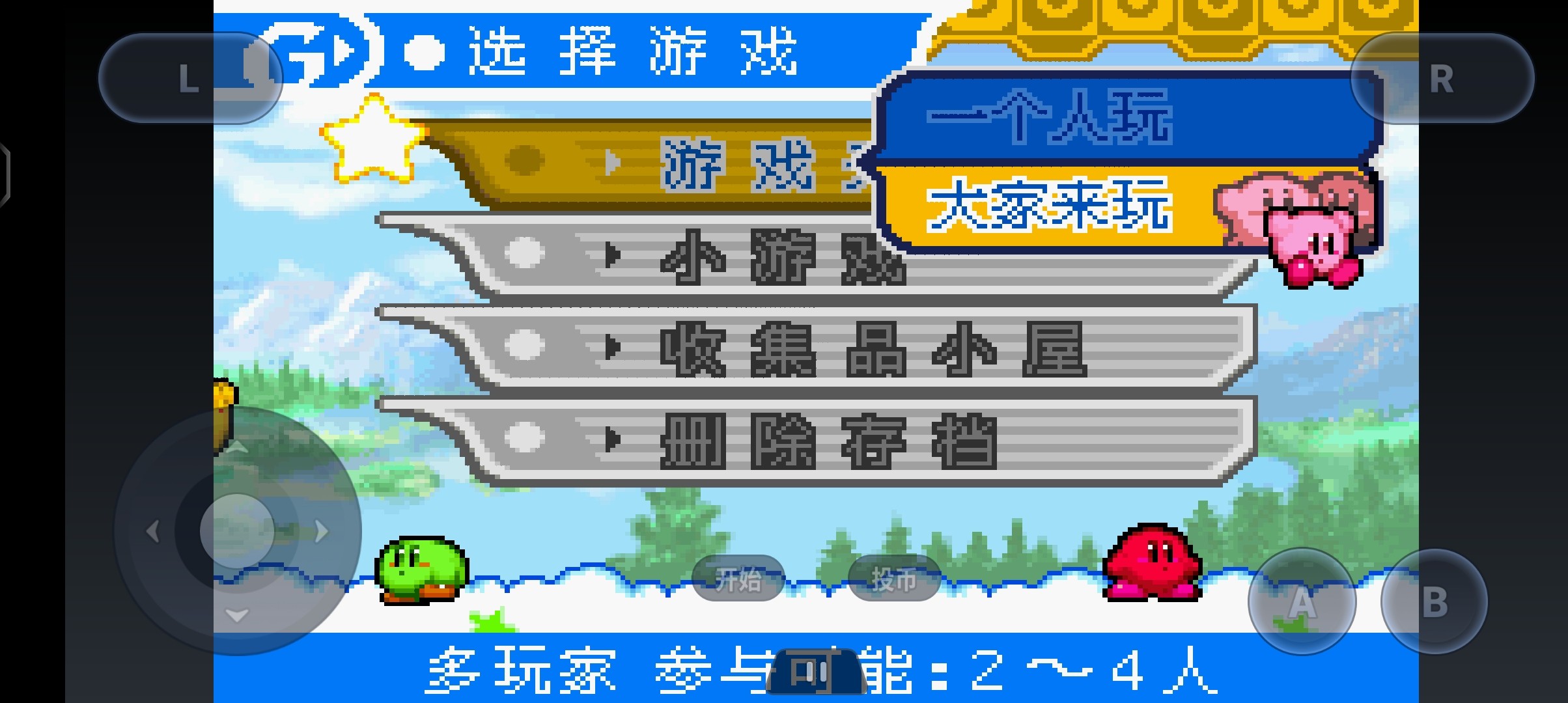 游戏是通过轮盘控制移动(建议用十字轮盘),A为跳跃,B为吸收(攻击)