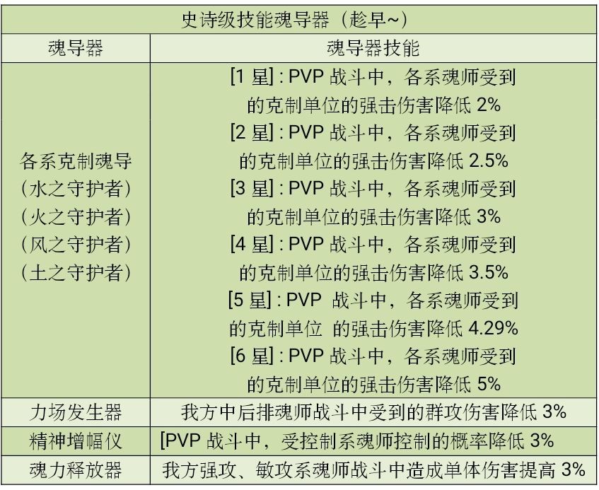 魂力释放器(对风系的优势大)其他三系中单体伤害的强攻和敏攻很少,只有风系是以单体爆发为主,部分风系搭配邪月前排单体突破。若是风系玩家,这个魂导器在史诗级中优先级放在第1位,若是其他三系则不着重考虑。