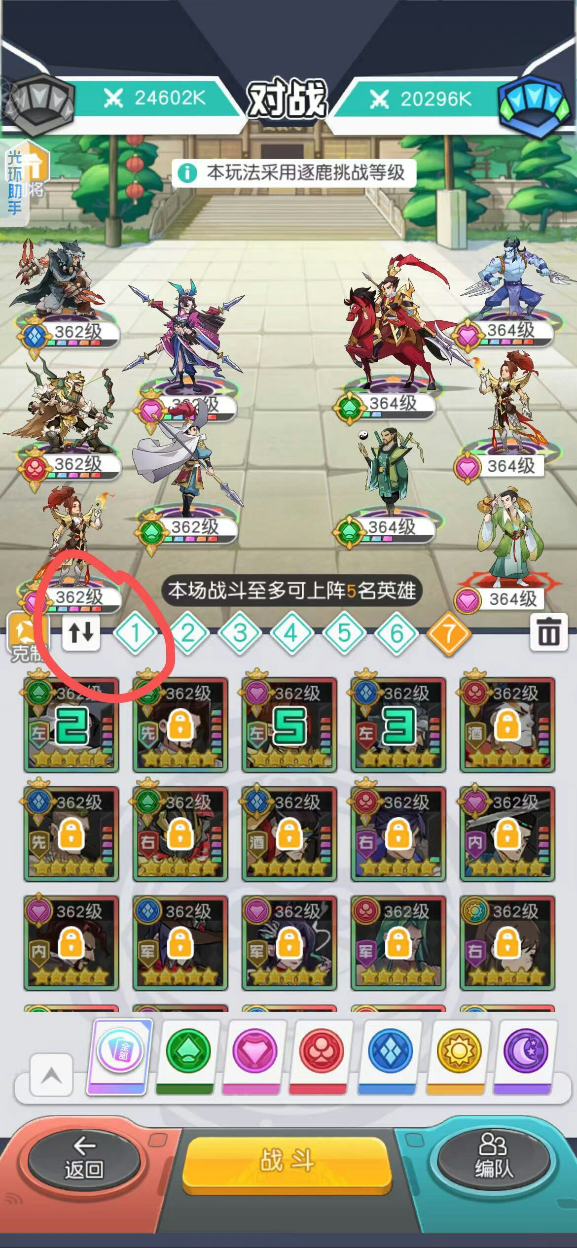 5人队选择卢俊义队碰对面的二等马,基本上5敏有翻车风险外,其他的都十分稳定。选择5敏队吃对面的三等or四等马,最大限度的提高胜率,最后选择雷法等质量阵容稳吃对面的最弱的花色阵容。在7队中轻松取得4胜。