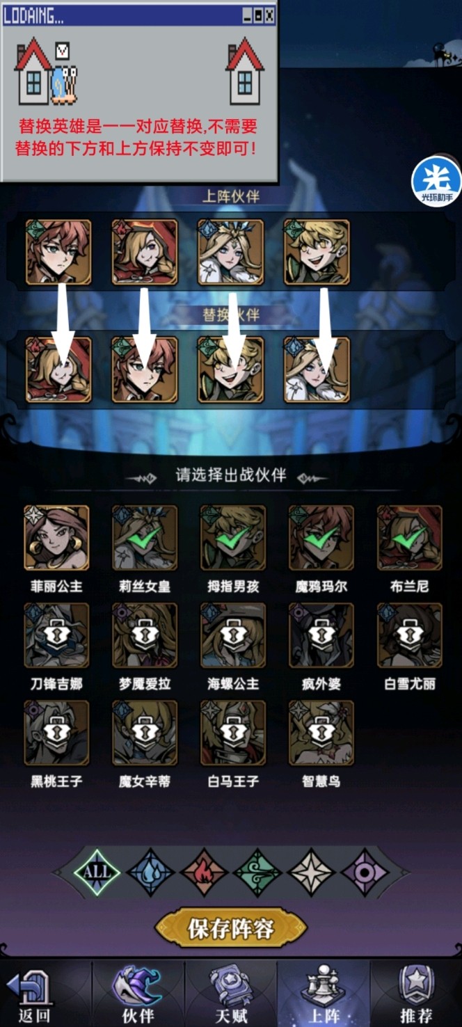 ③:1.所有天赋均升5级优先激活新英雄,如果天赋升错了可以去重置天赋,激活新英雄后去上阵→替换英雄即可(不优先激活新英雄会导致卡住)