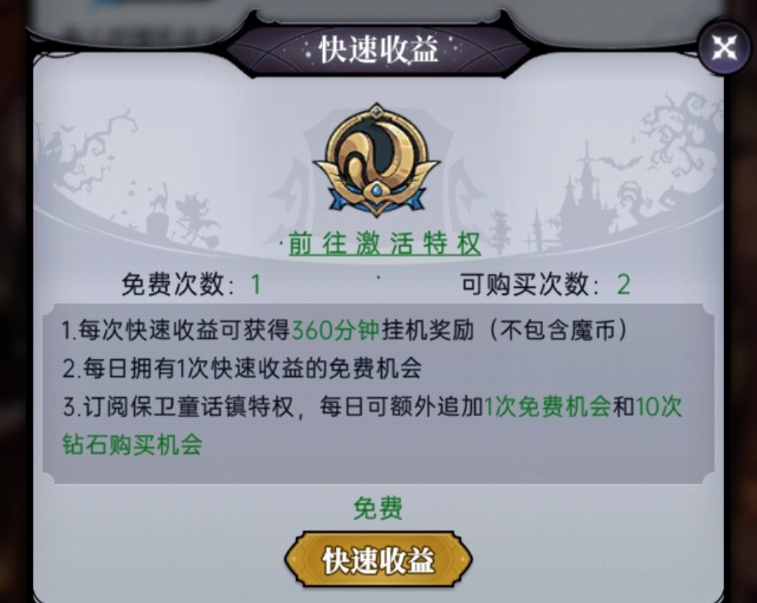 所在关卡会影响快速收益,每日快速收益不要忘了喔!