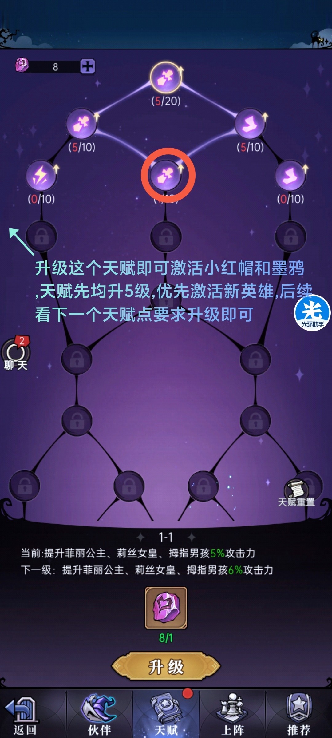 后续再看下一个天赋点要求升级即可。(天赋每日可免费重置哦)