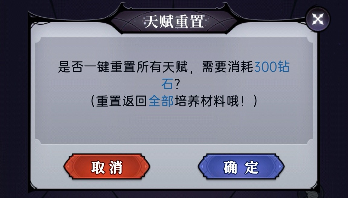 更正一下:天赋重置应该是每天免费一次,多次重置则需要钻石