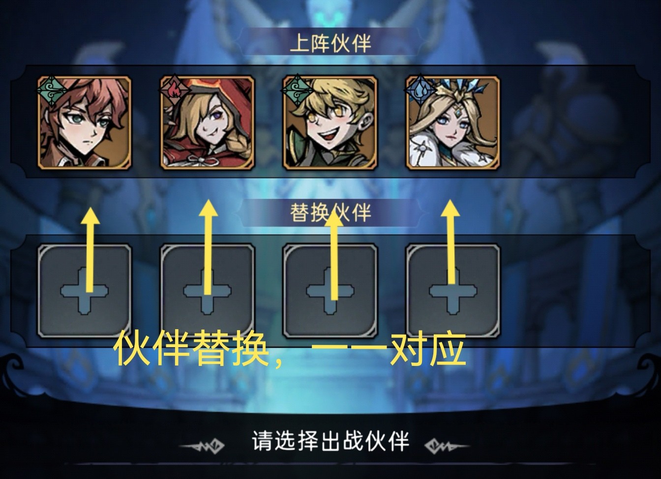 当你解锁新的伙伴,这个时候你只需要在对应位置替换,场上的伙伴就会变成新解锁伙伴了(会继承原伙伴等级)。