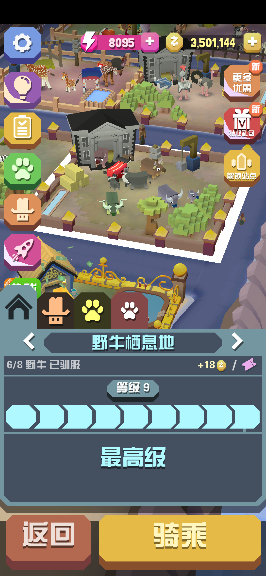 在这里有几个可以帮助到玩家能尽可能多捉动物的技巧分享一下,首先尽可能的升级动物家园,举例示范,像野牛家园升级之后除了获得稀有品种还能获得特殊buff,比如说换乘野牛的时候野牛会有一个加速冲击buff,除了加速任何动物也能撞开,虽然只有短暂的时间,不过也能帮助我们挺过一段艰难的地形。