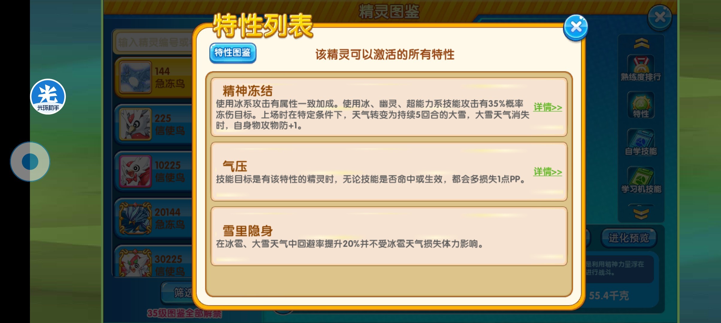 还有两个技能,分别是回血和劝退,因为这两个技能就是来评判一个辅助合格不合格的,很明显,这个冰鸟作为一个辅助很合格,同时我这里多说一句话,这个精灵还可以学习治愈之铃,给队友解除状态也是OK的,同时,这个精灵还是十分少见的,能够自学顺风的精灵。简单一句话,它的辅助能力原本要比他的输出能力更高