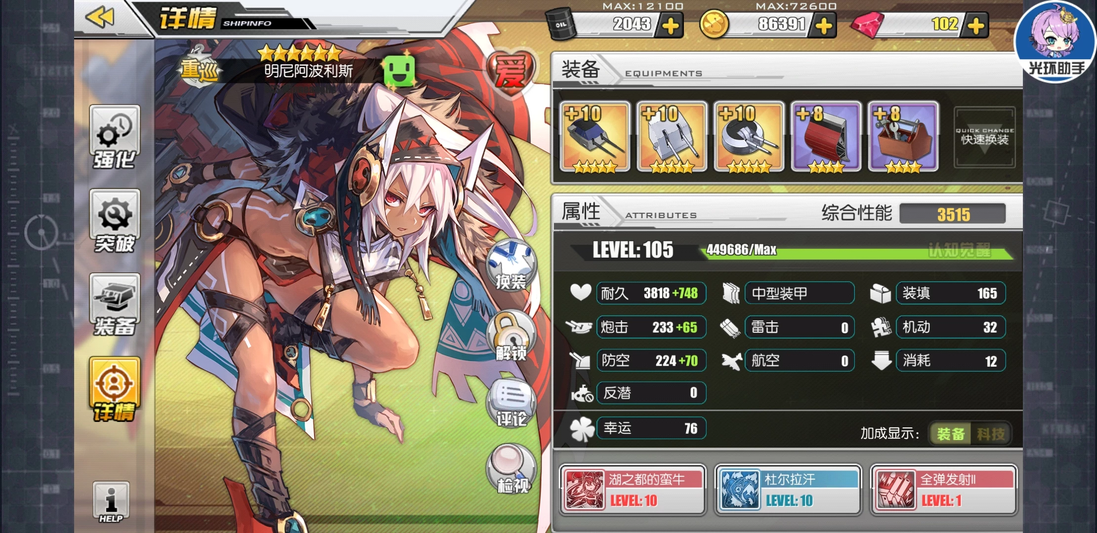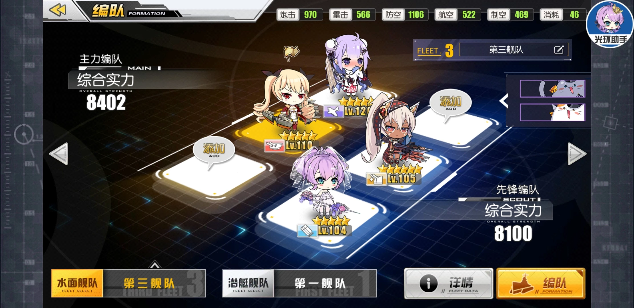 只要所有角色能有110级左右,猫随意,手操击破所有敌舰是肯定可以的