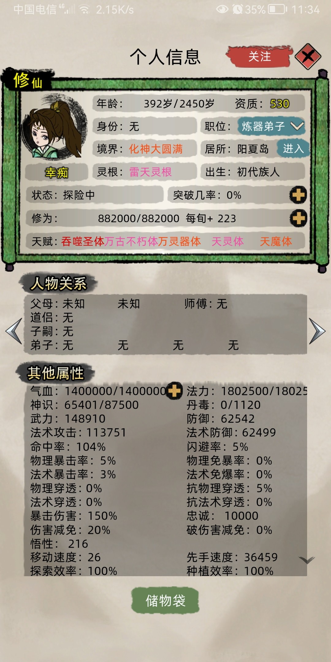 兄弟69的资质你是怎么突破化神大圆满的。不得不说真牛逼。
