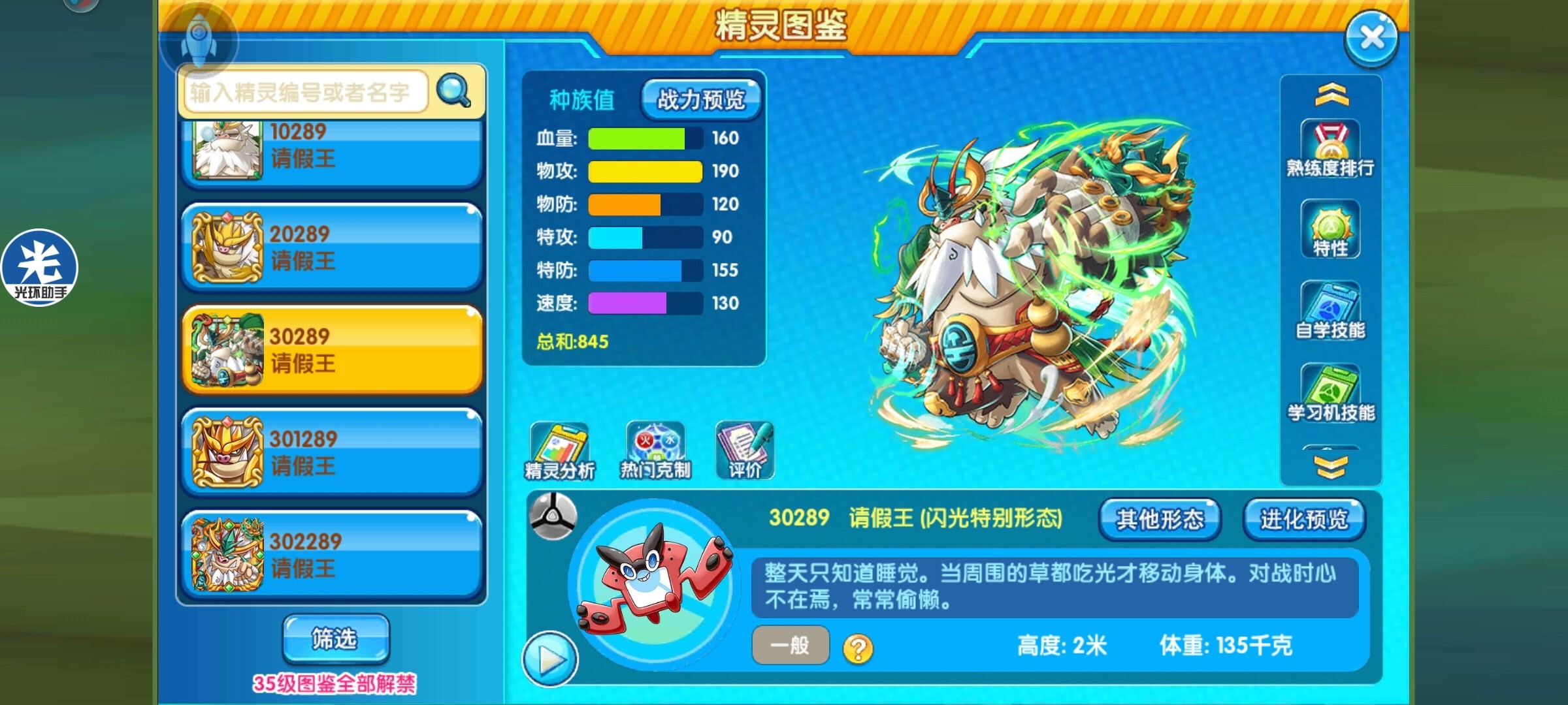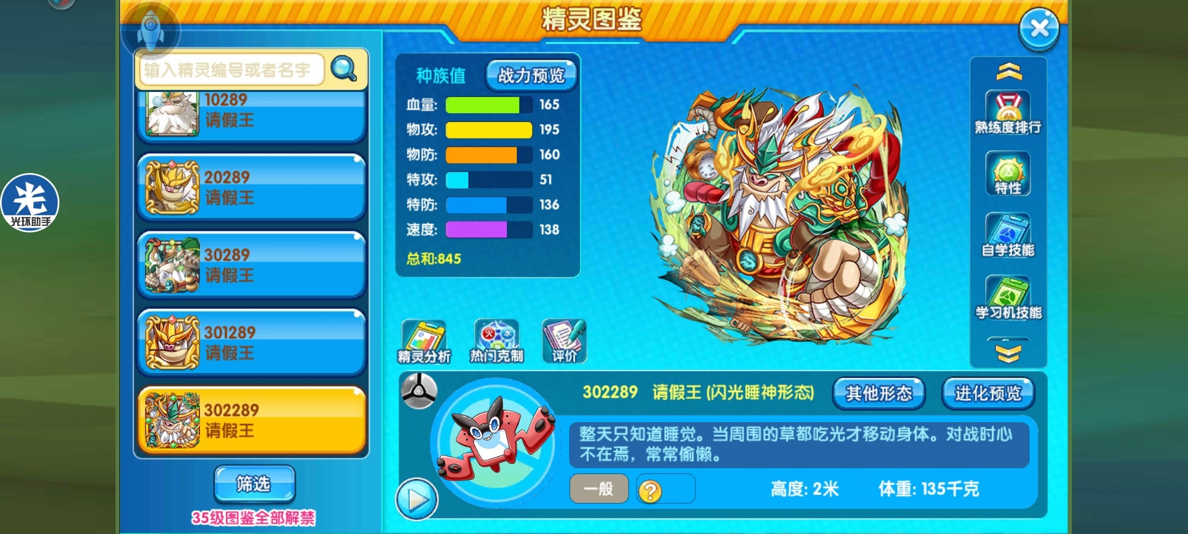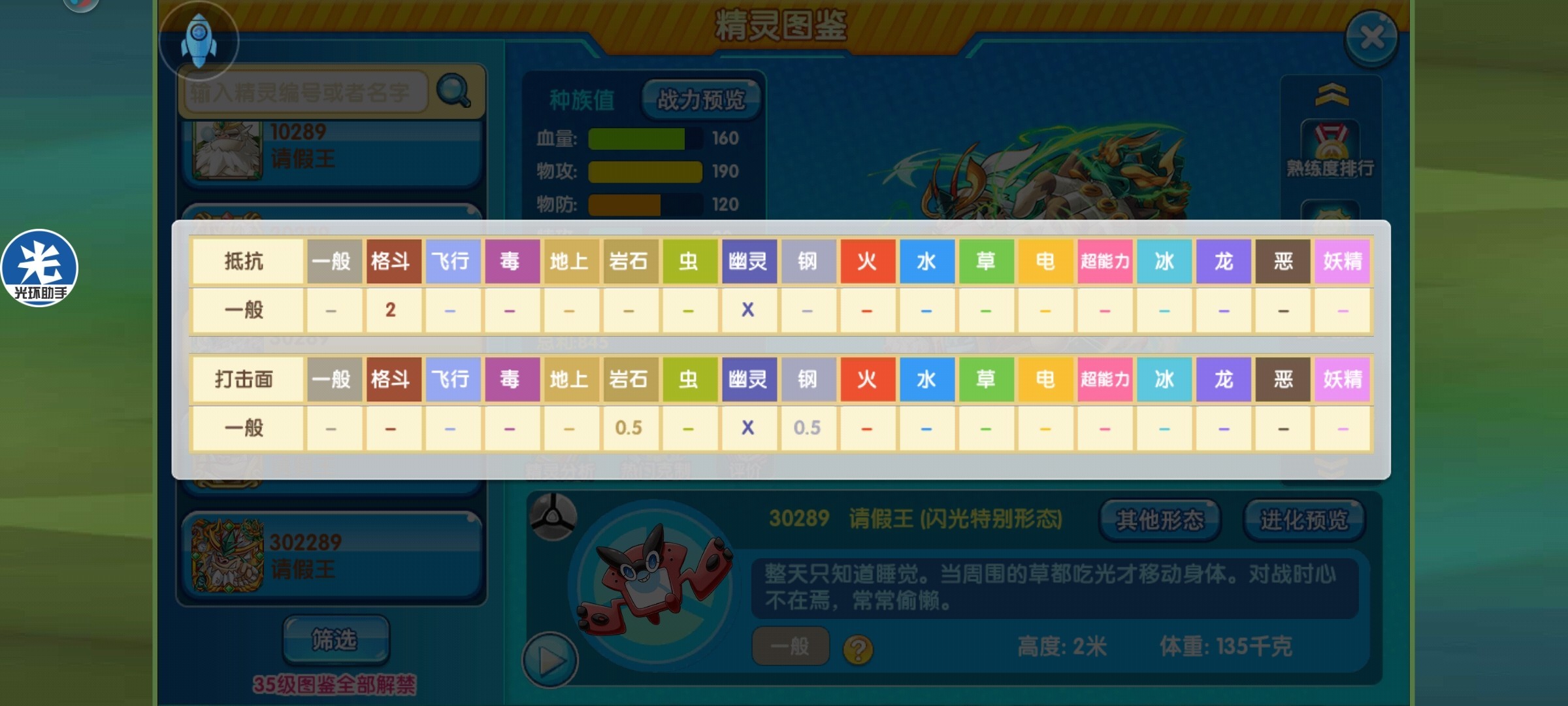 总结:关于请假王,可以算是当前物攻手一只不错的选择。本身肉度与输出都非常不错,因为特性不吃除睡眠之外的异常状态,所以在满配的情况下有肉度有输出还可以强化,可以较轻松的站场输出。需要注意的是,虽然请假王优秀的数值与肉度使其可以轻松站场甚至赖场,但面高爆发的克制伤害,一定不要过于大意还是走为上策。