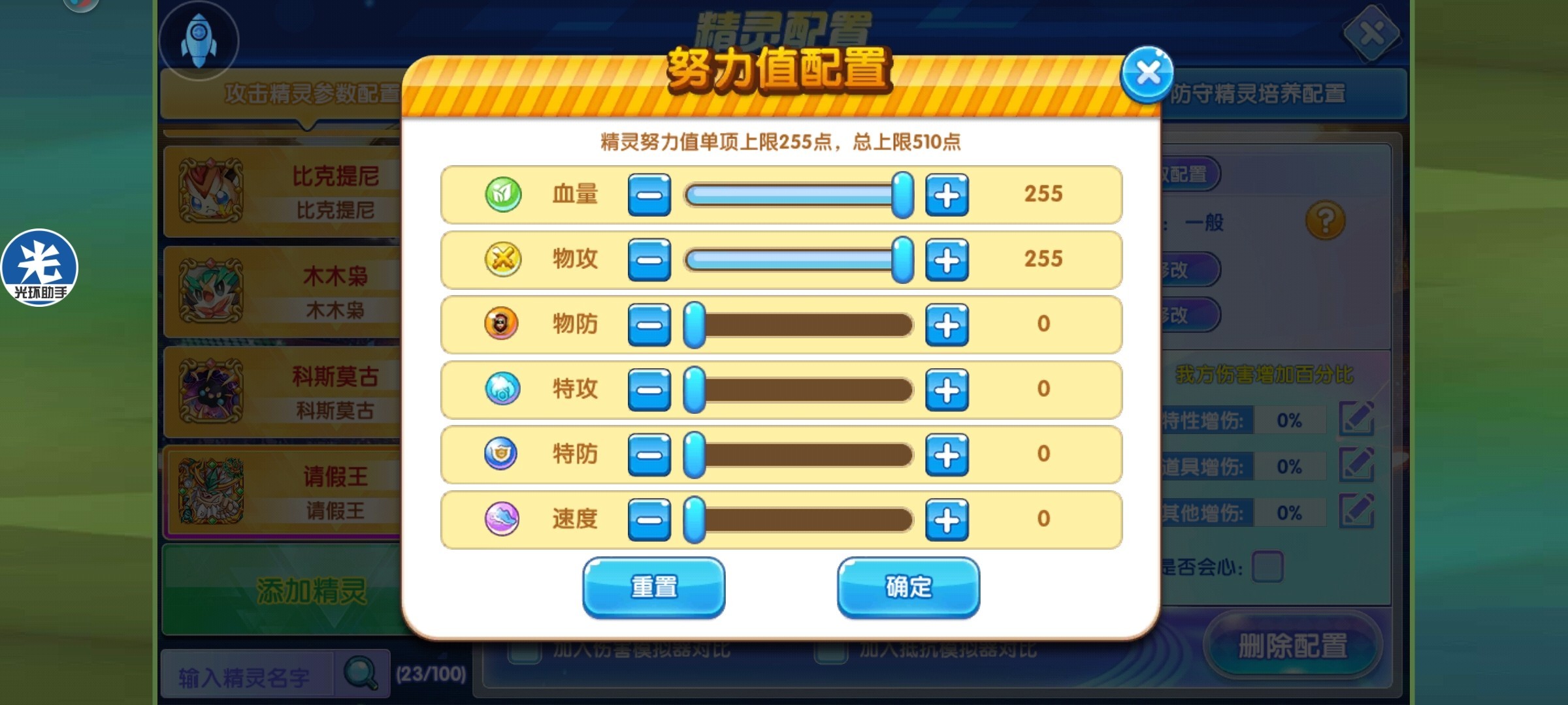 由于请假王在速度上并不出色所以速度就不考虑了。点血量和物攻把输出和血量拉上来就可以了