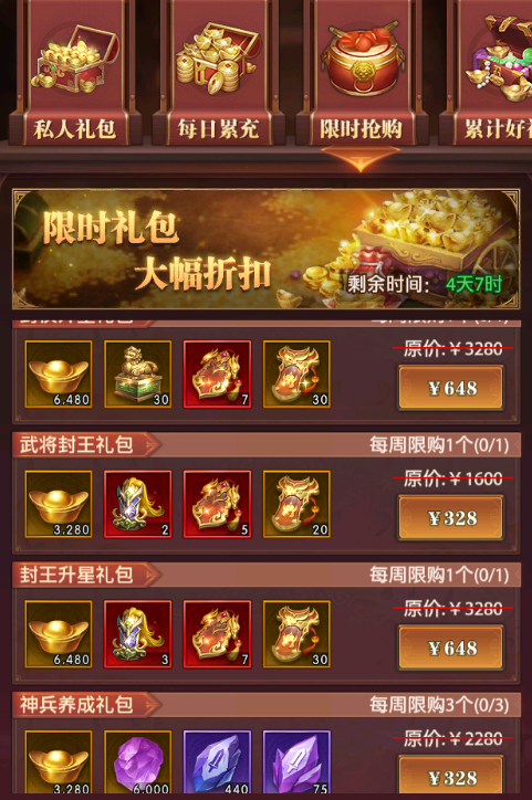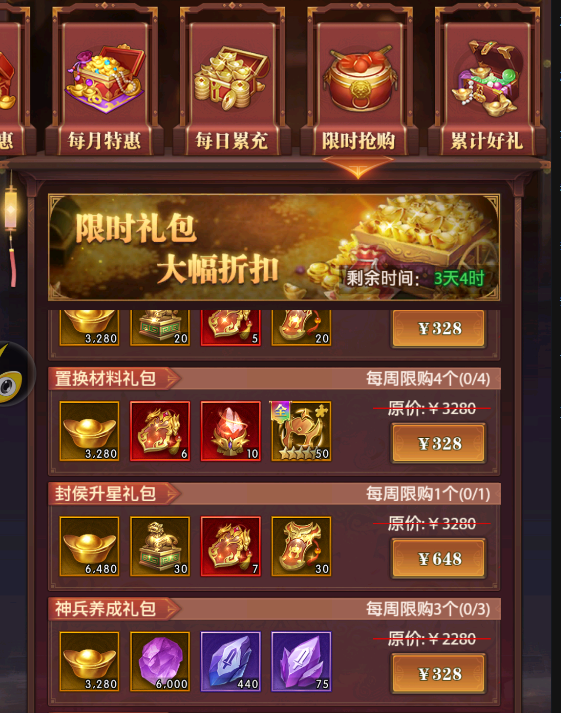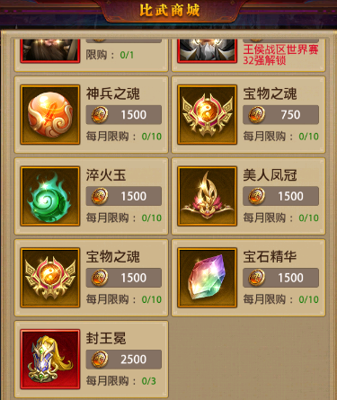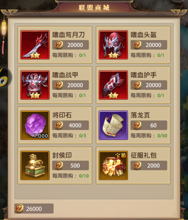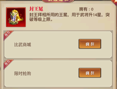 目前【封候冕】主要的获取途径为比武大会的比武商店兑换,以及限时抢购的礼包购买,每周可获取的数量,可供一位13星武将升14星哦。