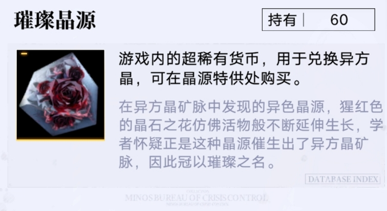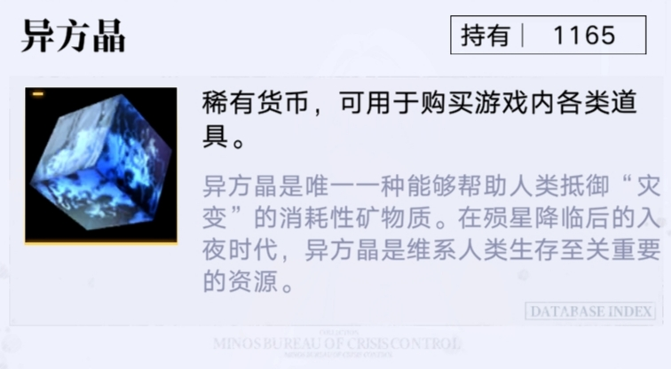 主要获取方式:专属补给,随时间回复,异方晶购买