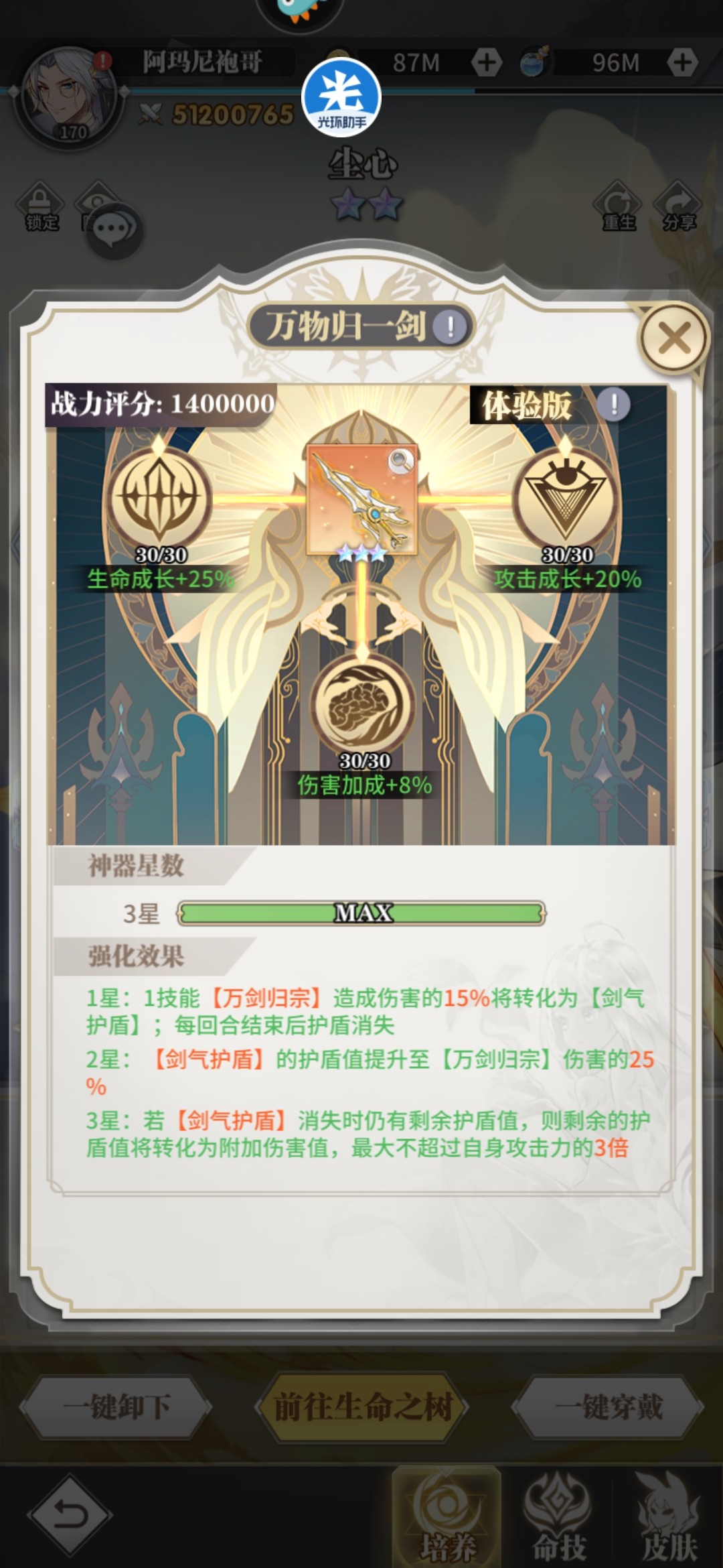 ②、【剑气护盾】的护盾值提升至【万剑归宗】伤害的25%