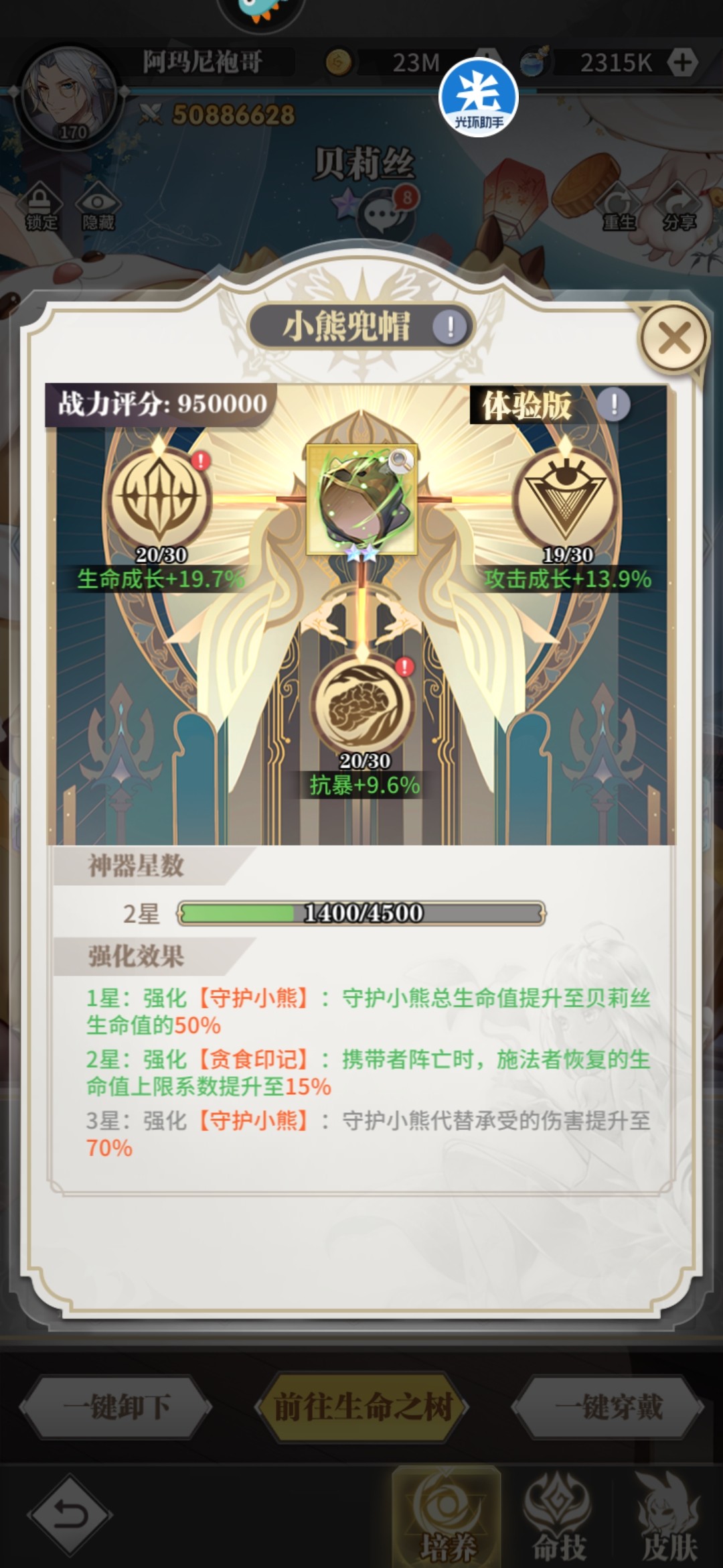 特点:保命和二回合伤害增加,光暗强度一般,沦为工具人,较为脆皮,多回合伤害还行,物理系好基友,神器较为拉胯,二星可升,三星自选