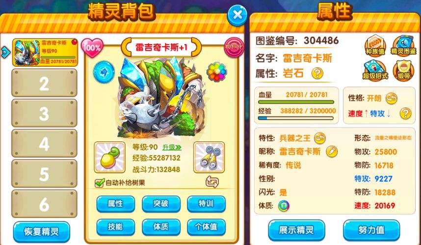 激活特性后,携带技能远古兵器,在精灵研究中心-精灵形态转换-特殊转换中选择闪光雷吉奇卡斯,选择佩戴不同属性的武器,精灵能够获得额外效果,特性无法被无效。
