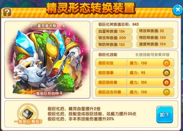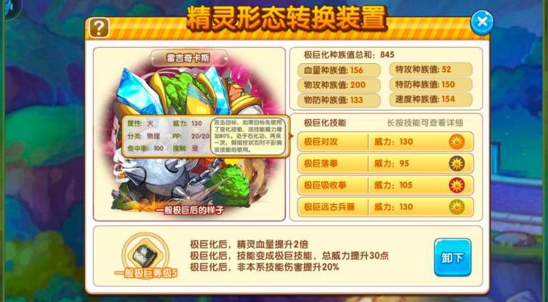 绵绵泡芙作为一只免费的宠物,能累计爆发伤害到自己身上,等到回合后在受到伤害,所以这只宠物,可以拖雷吉奇卡斯的极巨化回合,从而使自己献祭。