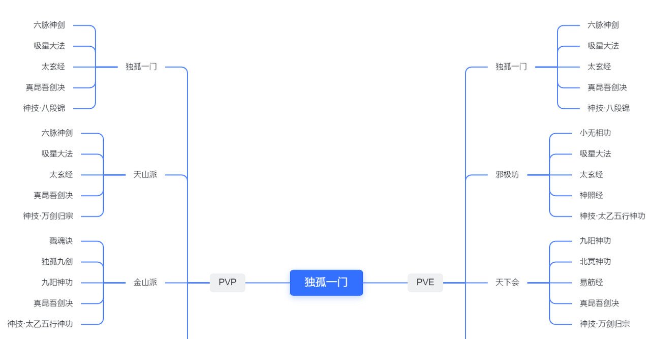 而右面的以独孤一门为主导的PVE阵容就显得比较容易能接受一点,因为可替代的角色都具有下位代替,例如慈航教可用恒山派,昆仑派可用花间派,邪极坊可用任意术士,在秘籍的要求上除了独孤一门比较吃主要资源外,其余的就算秘籍不用给都可以发挥出很强的效果。