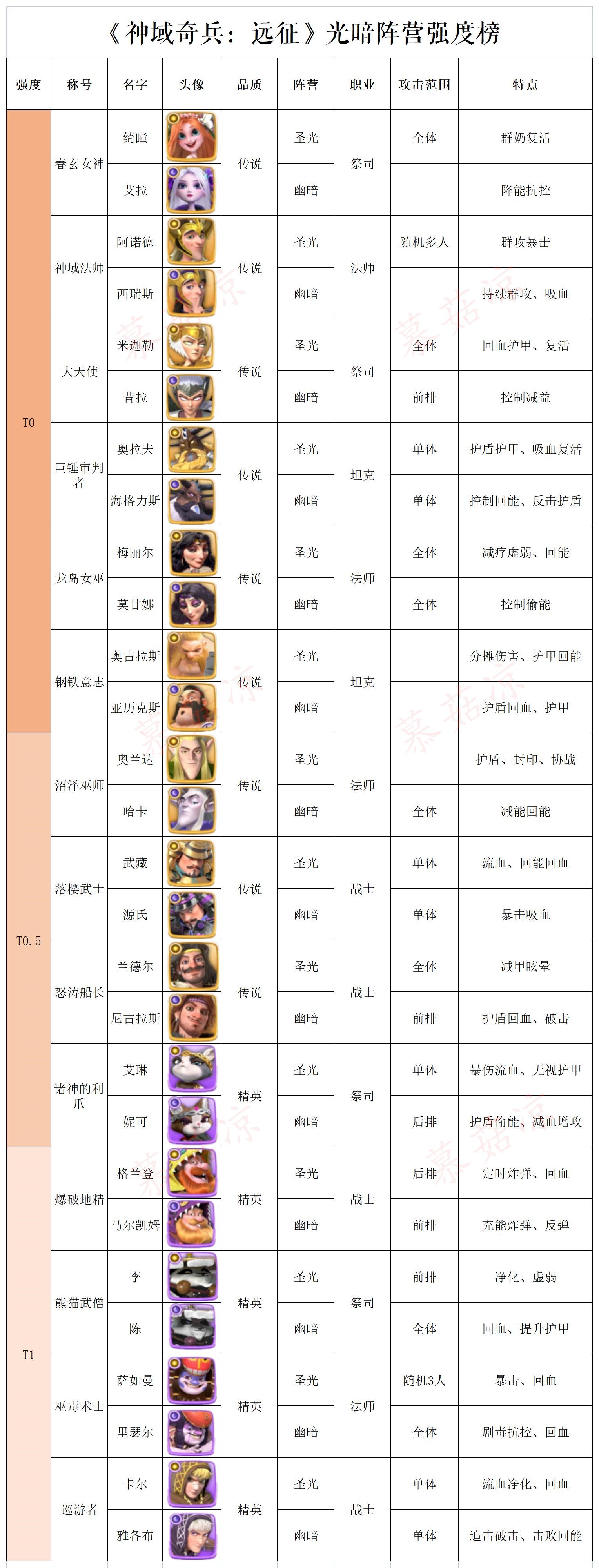 《神域奇兵:远征》光暗阵营强度榜