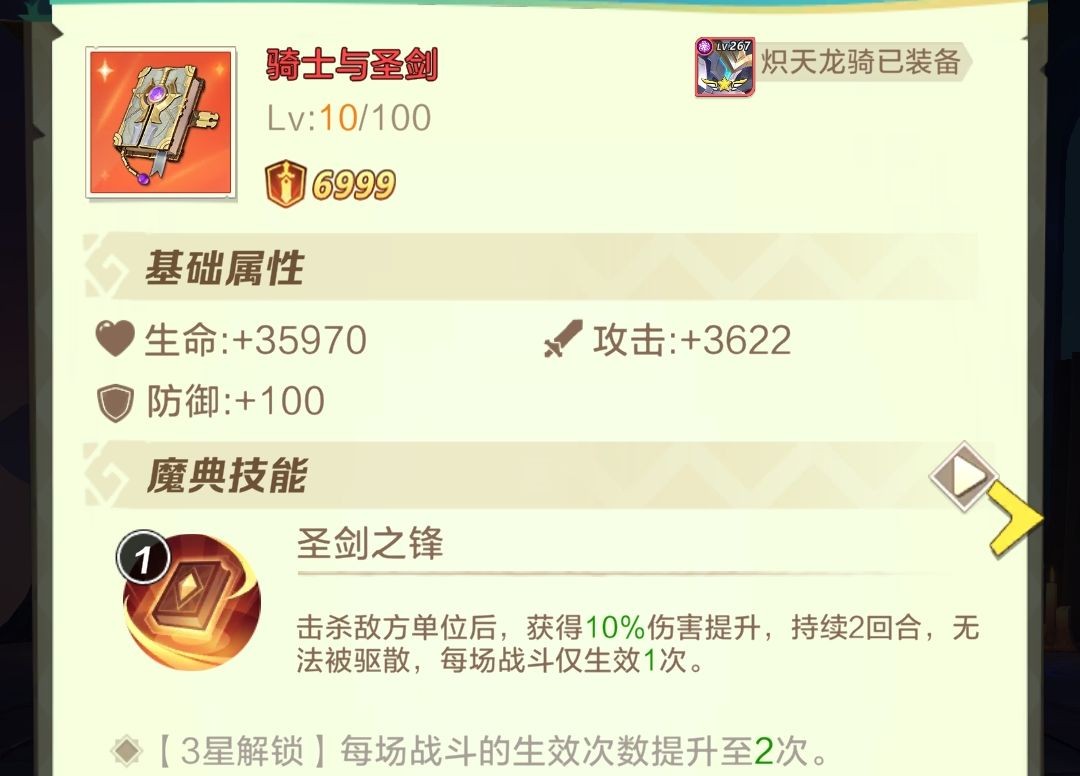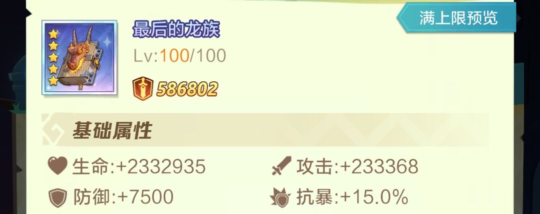 ✨最后的龙族三星才迎来质变,额外获得一个龙之怒效果,触发之后暴击率提升100%,免疫控制,受到攻击回复怒气【持续两回合】