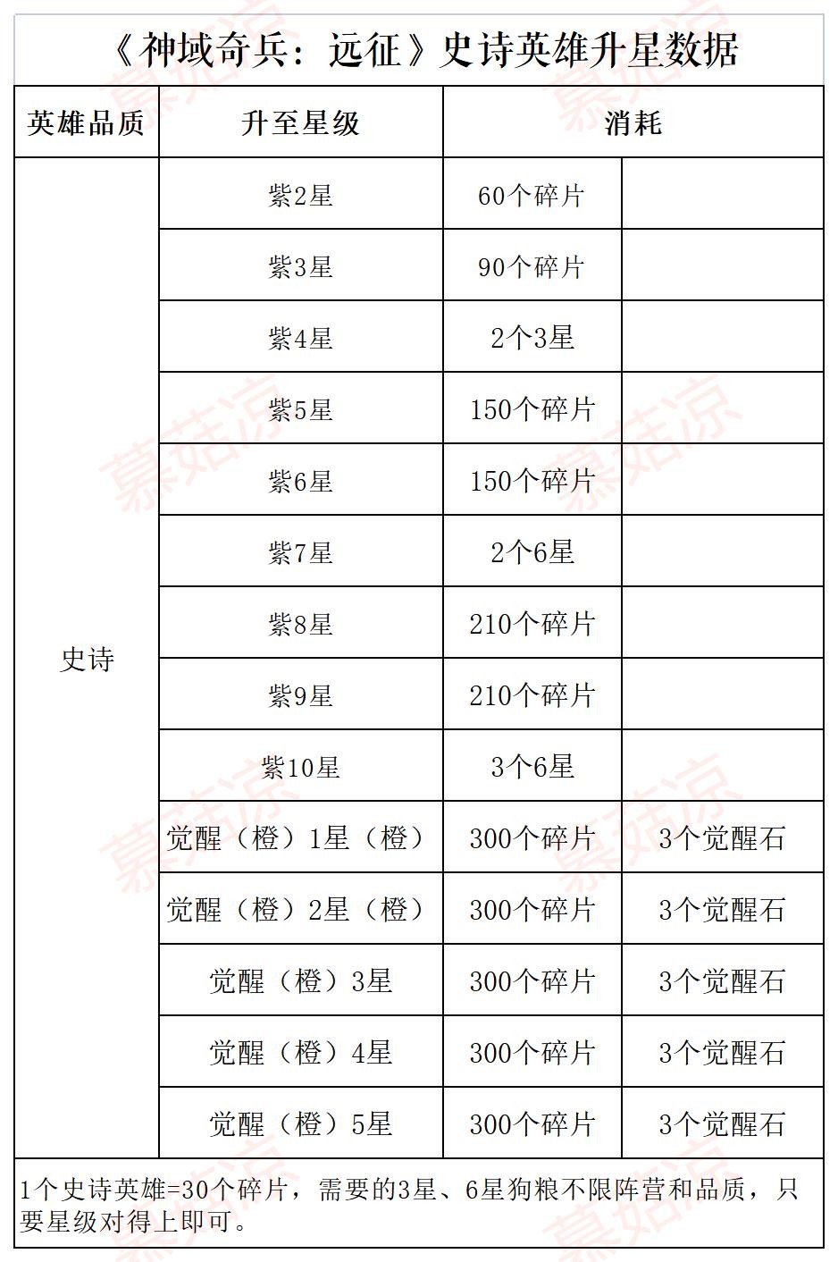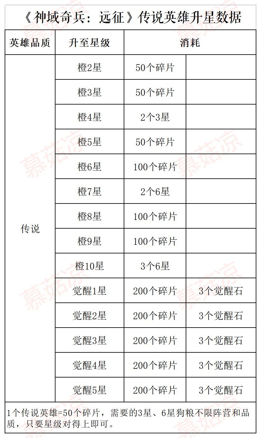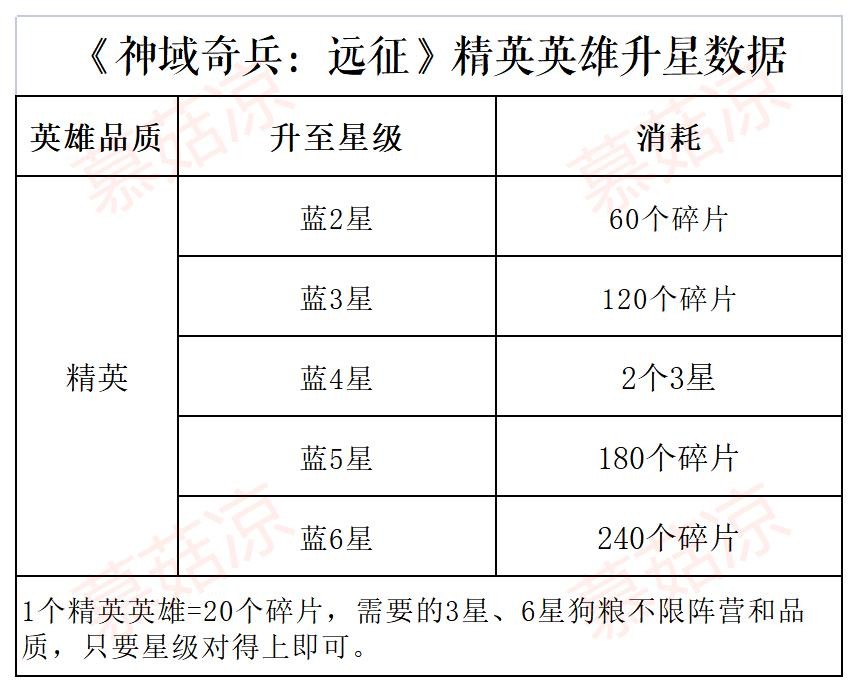 《神域奇兵:远征》英雄升星数据表