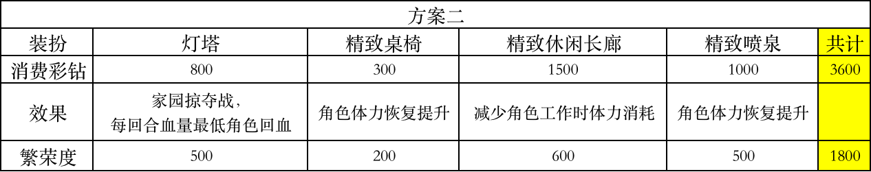 方案二:消费1800彩钻获得3600繁荣度。