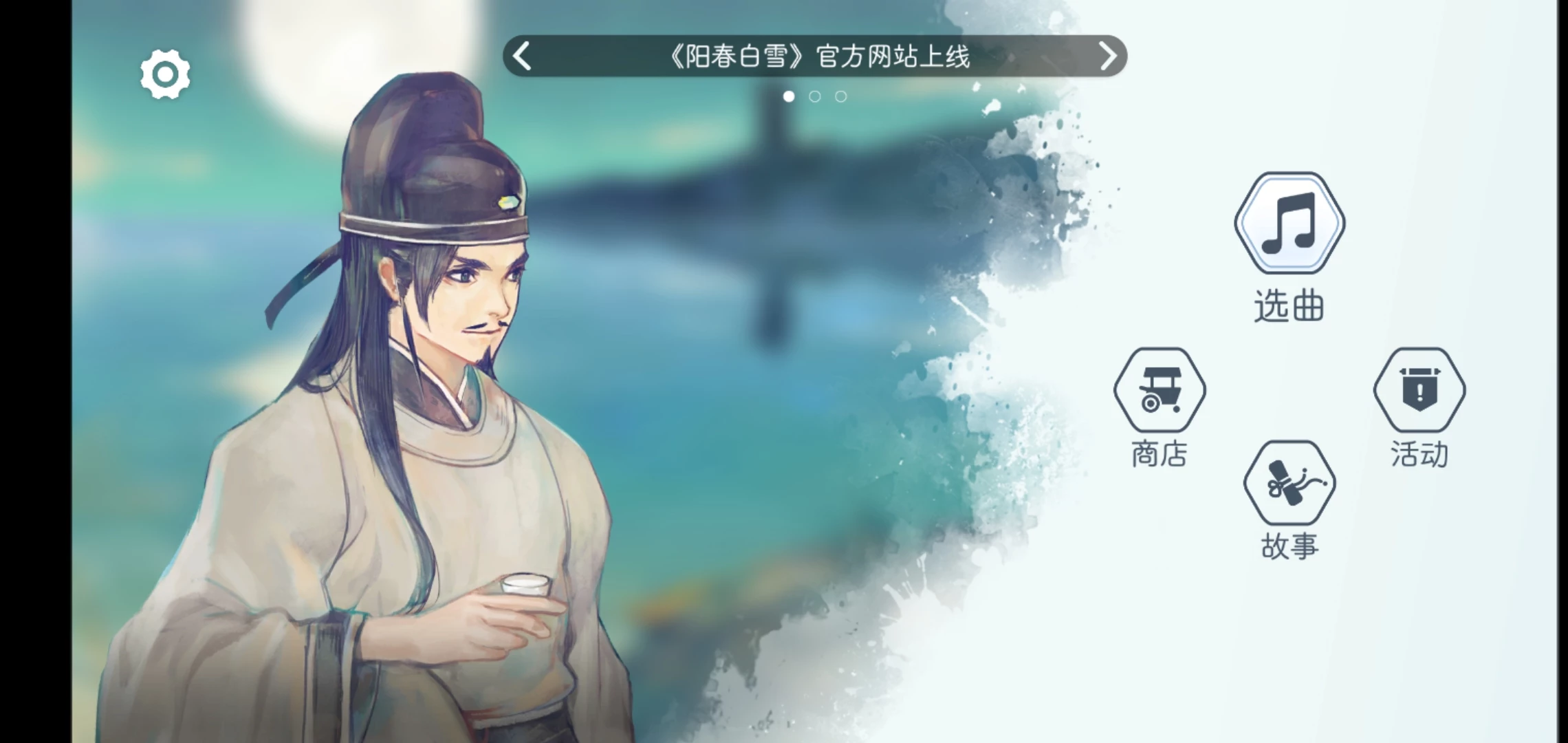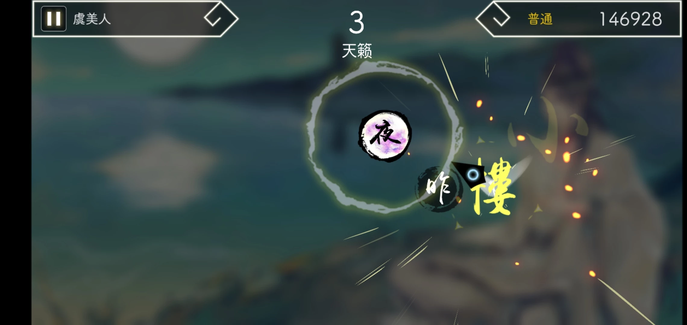 游戏的画风也衬着这音乐,素雅的水墨风采,朦胧背景里,是一轮圆月,倒影平静水面上,远处,是山,有云环绕着塔。一切都是这么怡人,真是一场视听的盛宴。