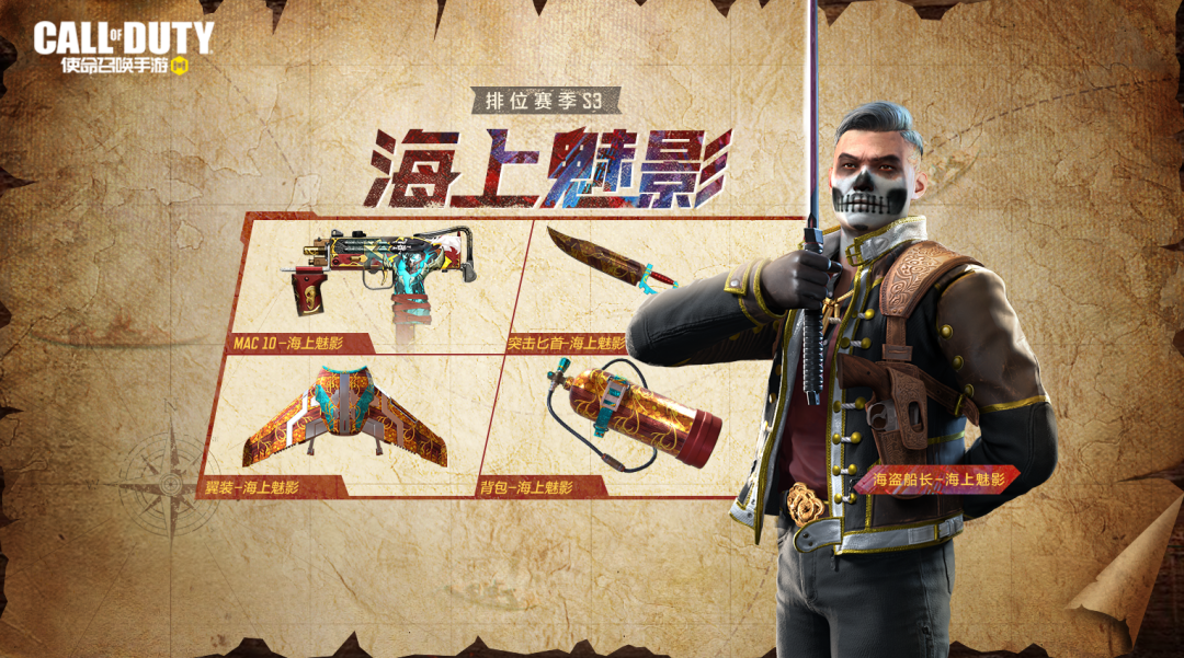 战士们达到使命战场大师III段位即可解锁史诗级角色皮肤:海盗船长-海上魅影。