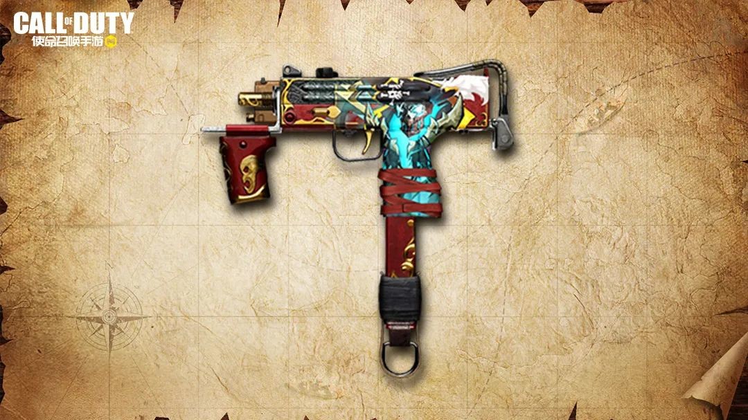 MAC10-海上魅影的涂装极具视觉冲击力。红色的前握把和弹匣搭配烫金装点,瞬间将战士们带回闪耀荣光的大航海时代。枪身处的海盗船长无所畏惧,正如这把武器的持有者,永远奔跑在冲锋的路上!
