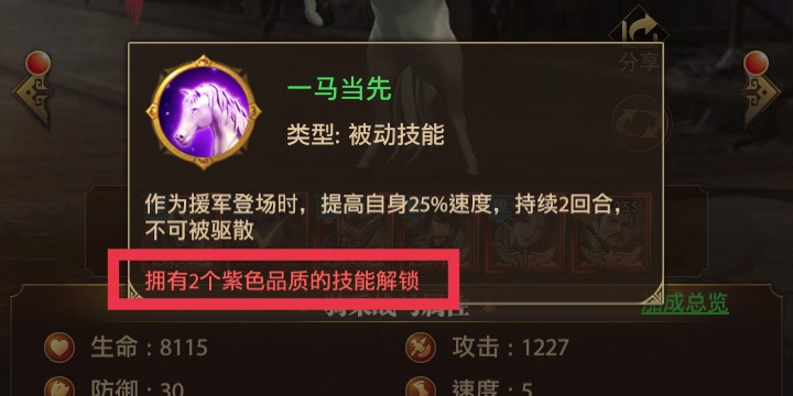 三、战马专属技能需要达到一定条件才能开启,所以玩家在搭配的时候可以优先激活技能,