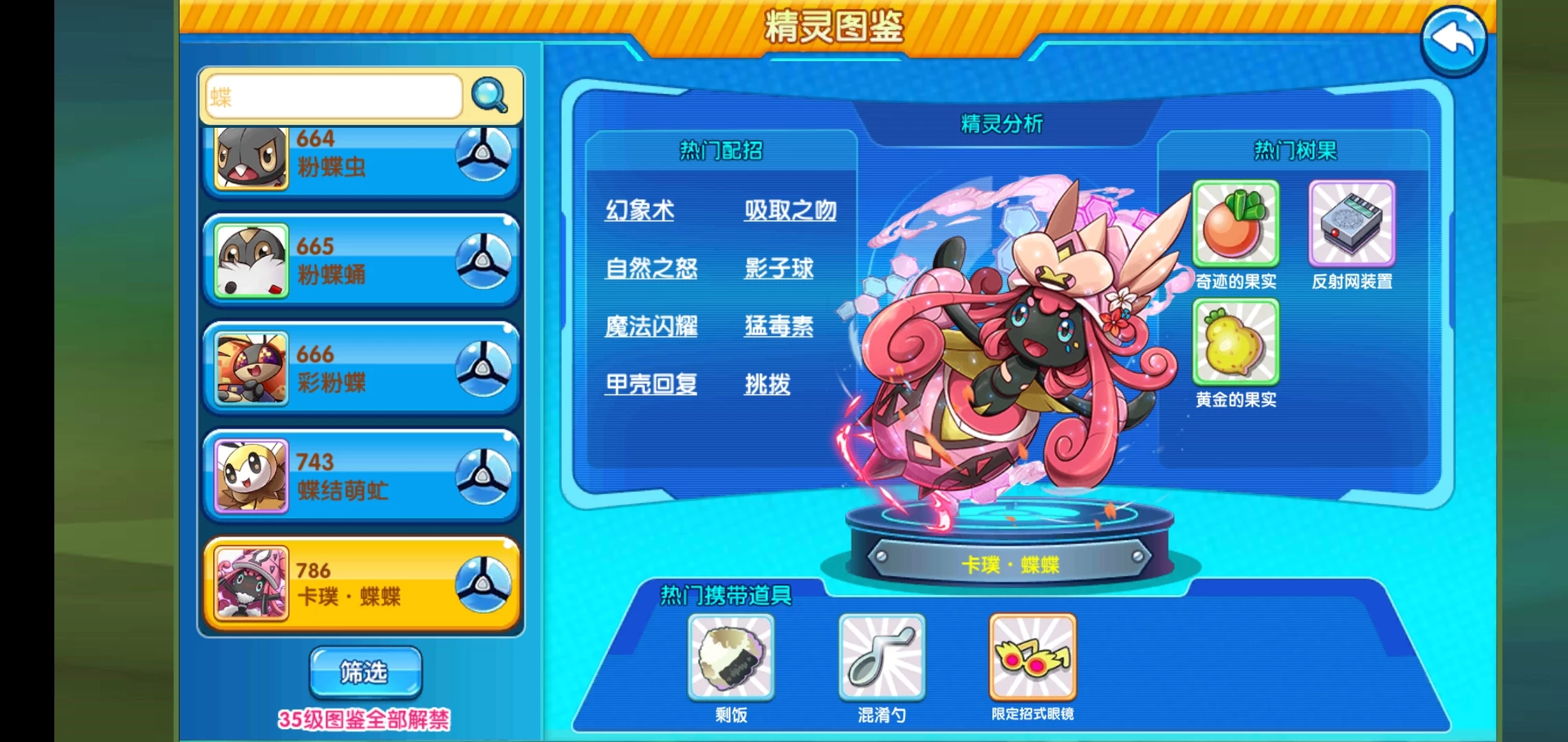 大家好,我是@白,本期和大家聊一只非常冷门的卡噗·蝶蝶,她是阿罗拉四大守护者之一,但是相比其他的三只,它的存在无疑是低调很多,四个守护神都各自掌控一种场地,蝶蝶的场地是精神场地,并非场地不强,反而是它自身上限有限,接下来,就让我们详细了解一下这只宠。