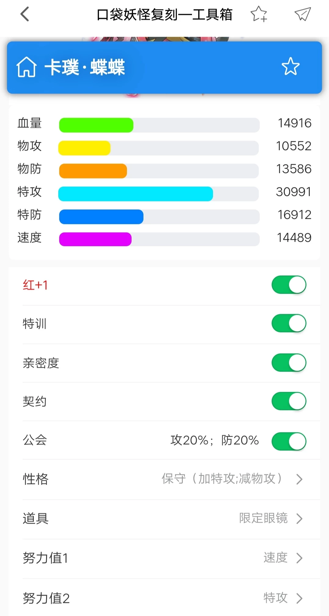 携带道具:限定眼镜性格和努力:保守(特攻+血量/速度)