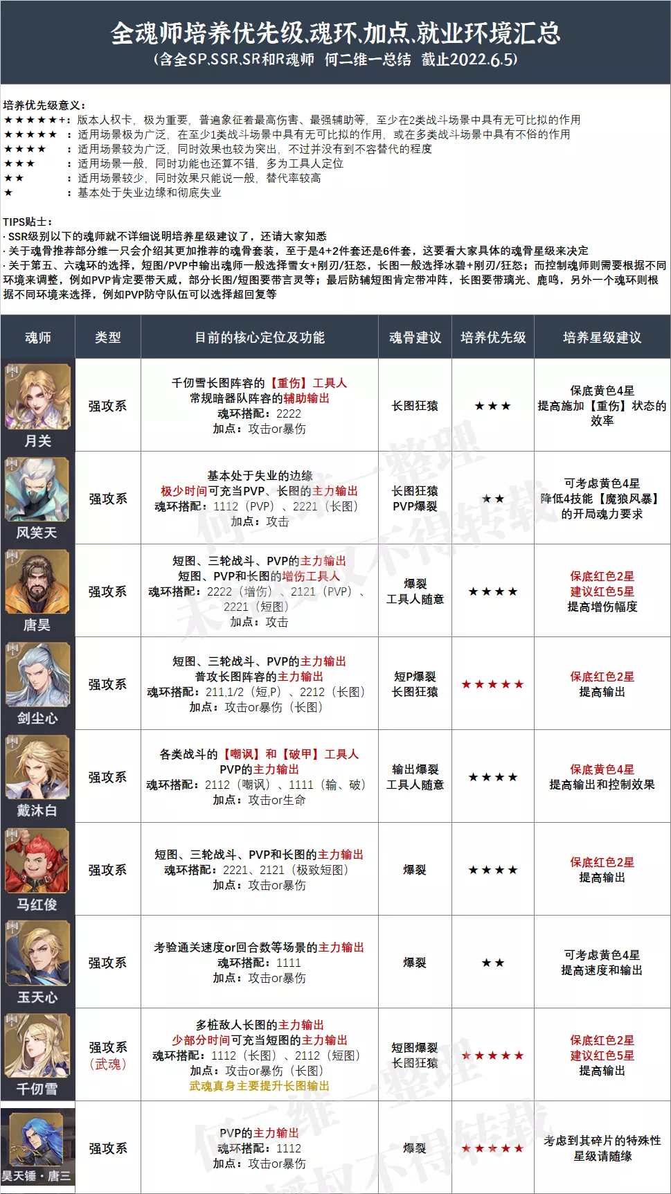 而最后也对SR和R级别的魂师调整做个补充,图就在文章最后的大汇总里面: