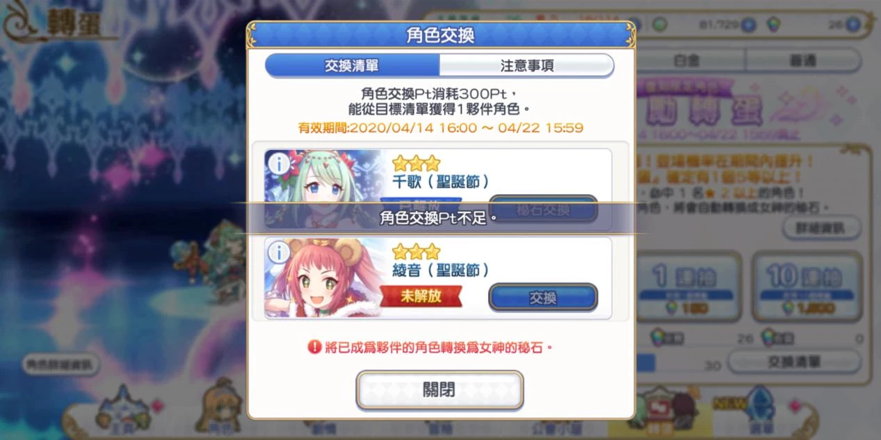 建议开局就抽3-4次十连,然后开始攒钻石,等限定活动的人物,300发一井(也就是300pt值,也就是4w5钻石保底),一井可以直接换一个活动up人物,是非酋的必经之路。每抽一次获得一点pt值,如果不够300pt值,活动结束后会换成等量扫荡卷。各位看着自己的钱包去抽,不合理规划的话,等活动限定出来你只能眼巴巴看着别人有。