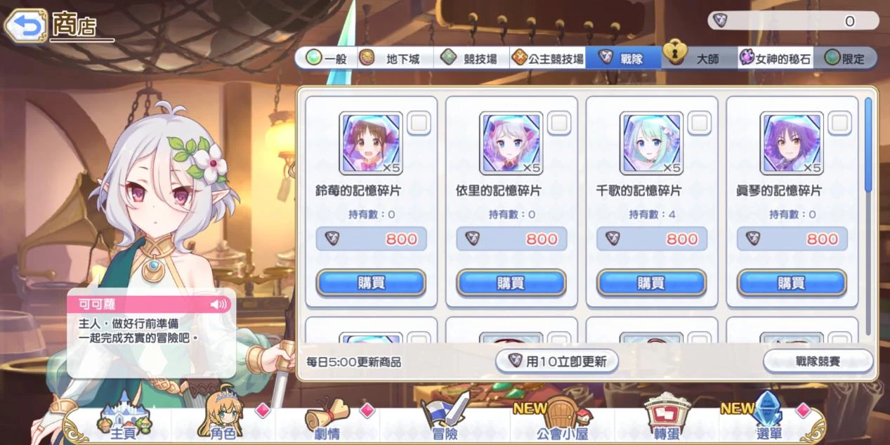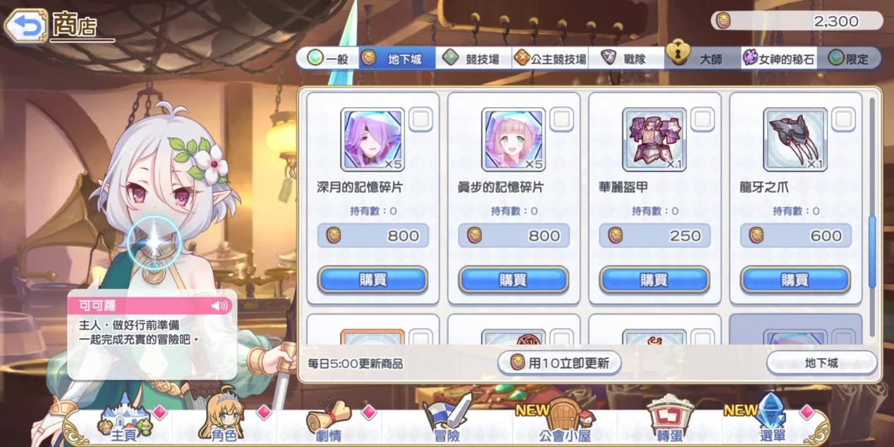 玛娜后面消耗会特别大,所以前期一定不要用来强化装备,钻石每天就完成人物买一组完成任务就好,要是探索副本活动期间可以买十组多一次次数,保证你的玛娜量,养成人物尤其是多队人物是需求很大的,活动奖励提升时要合理利用。地下城(爬塔)